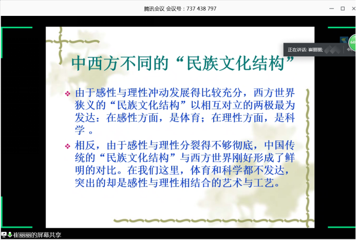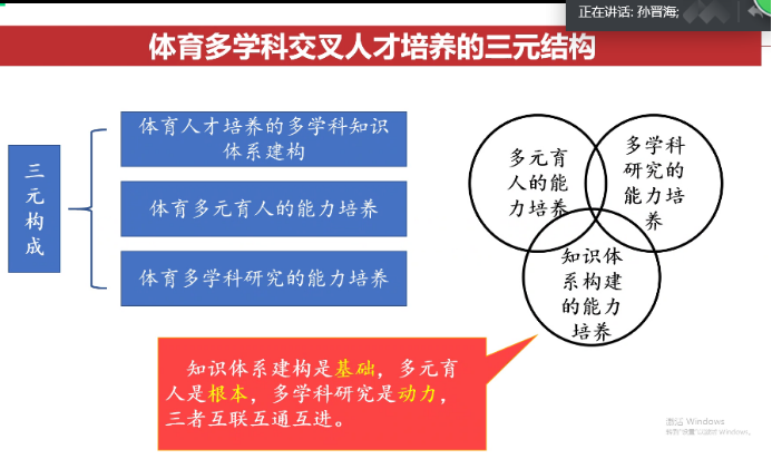 9日上午举行了两场学术讲座。首先,孙晋海教授作了题《体育多学科交叉人才培养及研究思考》的讲座,他从体育人培养现状,到如何加强人才培养、体育多学科交叉人才培养的三元结构、体育专业学生多学科交叉能力培养方案等4部分入手,强调了多学科交叉能力的重要性,提出知识体系构建是基础,多元育人是根本,多学科研究是动力,三者互联互通互进的观点,并表示需要从源头培养、过程培训、内部促进、外部协同、制度保障等5个方面促进多学科交叉能力的提升。随后,崔丽丽教授作了题为《中西方体育文化比较:酒神、日神与道家、儒家》的讲座,从民族心理结构、中西方不同的“民族文化结构”、民族社会结构三个方面详细介绍了中西方体育文化之间的具体差异。营员通过两场学术讲座领略了新葡萄AMG官方网站教授治学的广度和深度,并对学科发展有了进一步的了解,加深了营员对未来学习生活的认知水平。