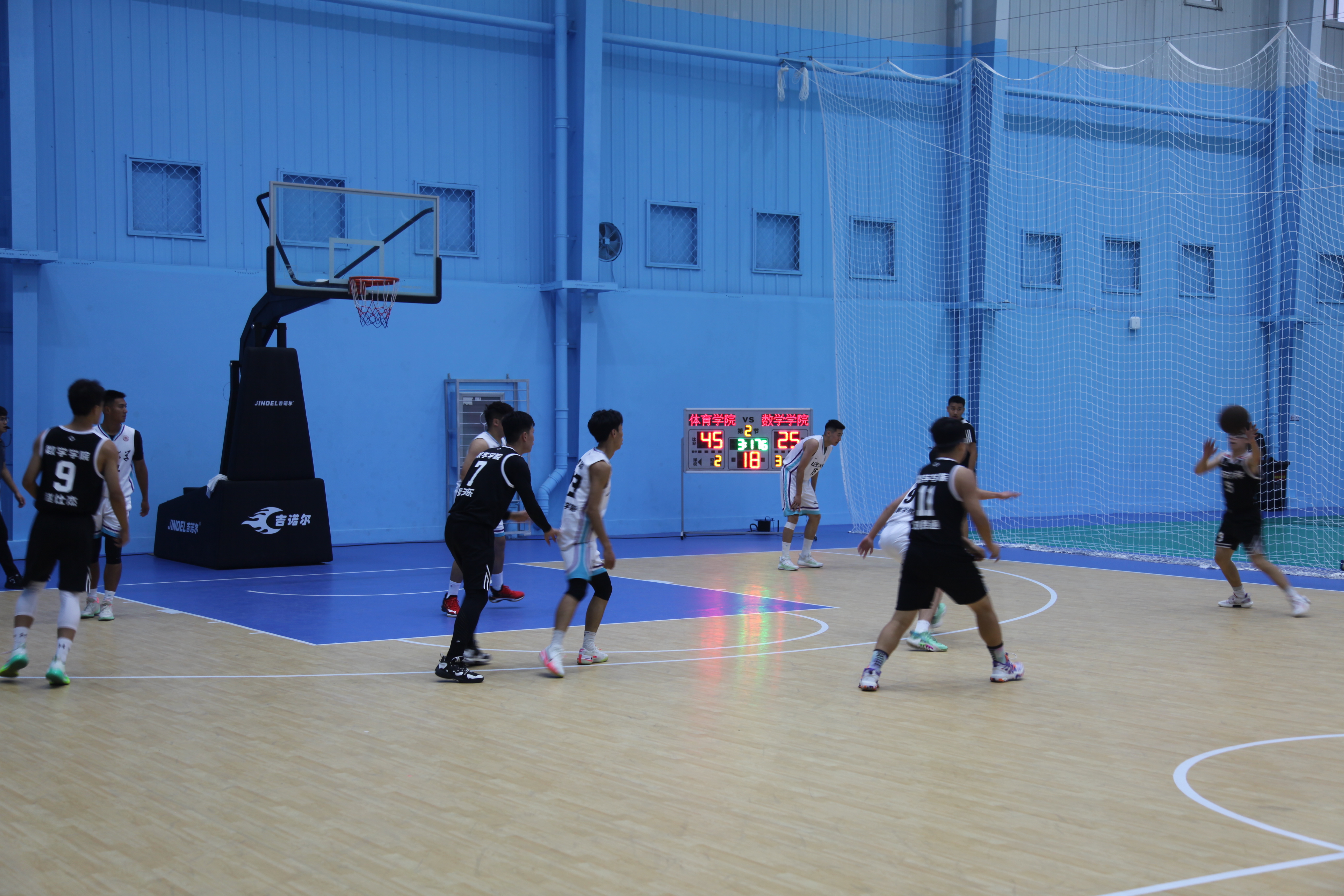 在男篮冠军争夺赛中,开场哨声响起,双方队员气势强劲,比分交替增长,局势十分胶着。场下观众加油声、欢呼声不断,场面异常热烈。数学学院面对对手不骄不躁,打出了配合,打出了气势。最终获得冠军。