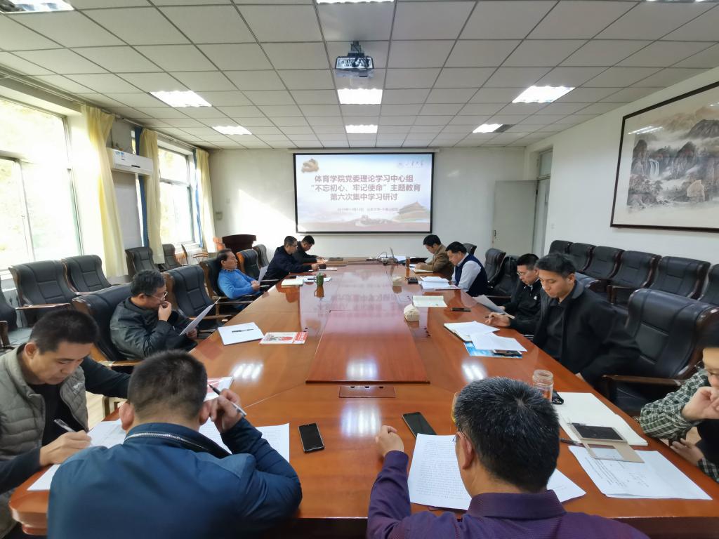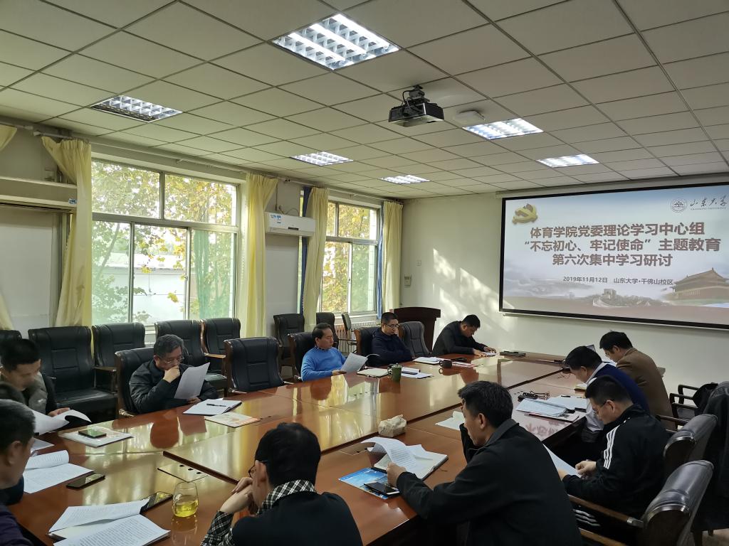 11月12日,新葡萄AMG官方网站党委理论学习中心组于千佛山校区开展“不忘初心、牢记使命”主题教育第六次集中学习研讨会。本次研讨会由学院副院长石振国领学“敢于担当、敢于作为——体育学科高质量发展,进一步提质增效”专题。学院党委常务副书记郭学庆主持会议。