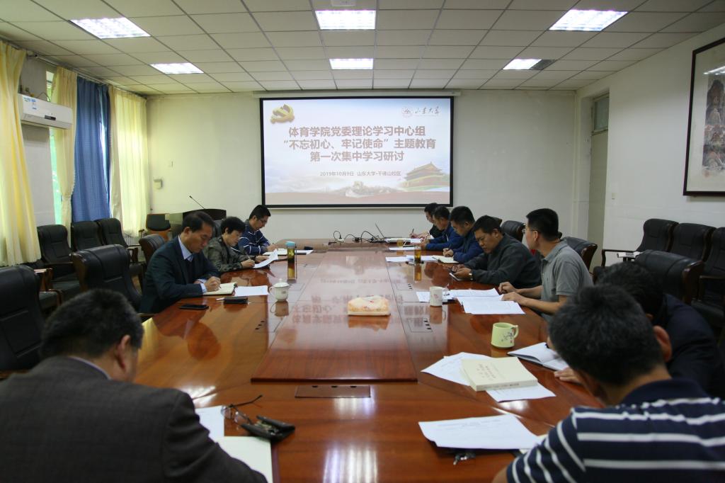 10月9日,新葡萄AMG官方网站于千佛山校区召开“不忘初心、牢记使命”主题教育第一次集中学习研讨会。学校第五指导组组长朱桂英、体育学院领导班子成员及学院基层党支部书记参加本次活动。