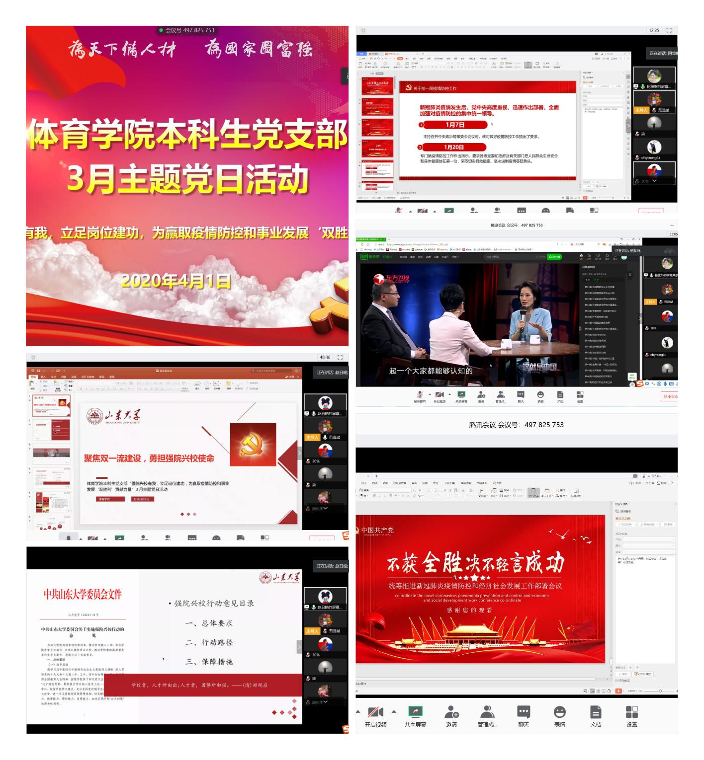 活动第一阶段由新葡萄AMG官方网站2016级党员杨紫坤领学,重点集中学习了习近平总书记在统筹推进新冠肺炎疫情防控和经济社会发展工作部署会议上的重要讲话精神,同时他带领与会人员一起观看了《这就是中国》第49期的视频片段。接着与会同学们就近期国内国外疫情的防控形势做了交流讨论。2016级张泉同学说到,近期看到很多援鄂医疗队开始陆续撤离,这反映出国内疫情基本得到了有效控制,他对疫情防疫战保持着非常乐观的态度,同时表示作为一名党员、一名中国人由衷感到自豪。2017级李鑫同学也分享了自己的看法,她讲到我国疫情暴发时正值中华民族传统节日春节,但是全国人民都自觉取消了聚会,为成功阻断疫情做出了巨大贡献,真正体现出人民战争的优势,疫情防控工作离不开每一个人的努力。2018级严若雷同学对国内外抗疫工作做了比较,他说国外有些国家疫情防控工作难度非常大,难以进行有效控制,这也从侧面体现了我国制度的优越性。最后范泽斌老师提倡大家,把疫情防控以来自身的所见所感所想,以思想汇报的形式,积极向党组织进行汇报。