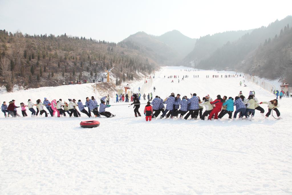 滑雪活动主要运用的是双板滑雪。师生们根据教练的基本教学及技术指导进行了自由滑雪。老师和同学们互帮互助,虽然在学习的过程中,大多数同学都尝试到了摔倒的滋味,但同学们均能够克服障碍,在较快的时间内掌握动作要领。活动期间还开展了雪地拔河比赛,两队成员根据编码分组,每组均为师生混搭。