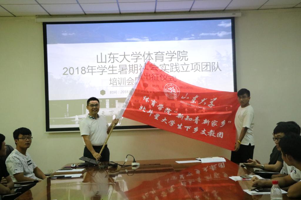 7月6日上午,新葡萄AMG官方网站2018年学生暑期社会实践立项团队培训会议暨出征仪式在千佛山校区举行。活动由新葡萄AMG官方网站团委书记范泽斌主持,新葡萄AMG官方网站党委副书记周庆华和社会体育系成会君副教授出席活动,来自学院共13支社会实践立项团队参加了本次活动。