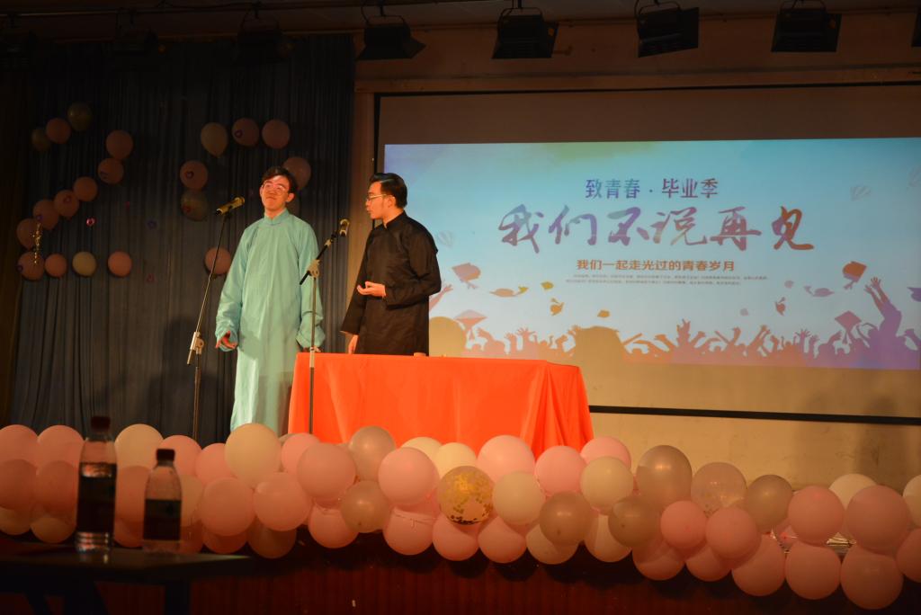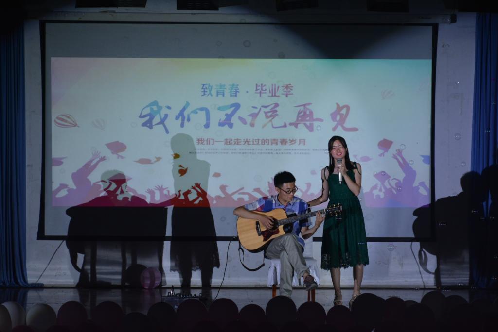 晚会在动感的As Before乐队演奏中拉开帷幕。接着,新葡萄AMG官方网站合唱团带来的一曲《四季的问候》为师哥师姐们送上最美好的祝愿。大一的卓家同和杨靖楷同学演唱《不说再见》,表达了对毕业生们的依依惜别。学校相声协会的姜梦奇、高梦洋表演的相声《拴娃娃》使现场的同学们开怀大笑。周浩天、吴子扬以及李娟、夏金钊带来的吉他弹唱温暖了每一名毕业生的内心。由研究生同学带来的诗朗诵《毕业季 致青春》,让大家回想起了大学生活的点点滴滴。跆拳道协会的同学们也在舞台上一展身手,让大家更深刻感受着新葡萄AMG官方网站独特的学院魅力。毕业生邓李洁、刘文娜、刘子璇、李言、徐璟带来的欢快舞蹈更是点燃了现场的氛围。