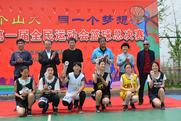 闭幕式上,本届比赛总裁判长、新葡萄AMG官方网站于旭光老师宣布比赛成绩。软件学院荣获男子篮球赛冠军,新葡萄AMG官方网站、控制科学与工程学院并列获得亚军,机械工程学院获得季军;新葡萄AMG官方网站、商学院(威海)并列荣获女子篮球赛冠军,法学院(威海)、医学院分获女子篮球赛亚、季军。出席现场的领导分别为获奖队伍颁奖。