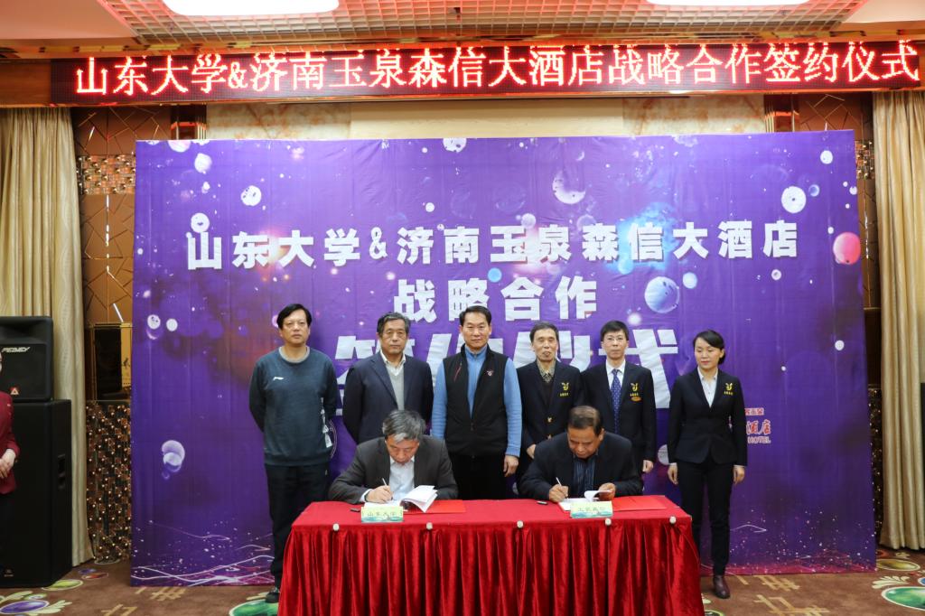 济南玉泉森信大酒店是我国首家乒乓文化主题酒店,建店20多年以来,在中国酒店行业中独树一帜,先后荣获“中国金叶级绿色饭店”“中国乒乓之家”等荣誉称号,同时是“新葡萄AMG官方网站乒乓球运动训练基地”。本次双方本着自愿、平等、诚信、共赢的原则,在前期良好合作的基础上,充分发挥校企双方各自优秀资源的优势,在科学研究、大学生乒乓球赛事、学术论坛、学生实习实践等方面进行全面深度合作。