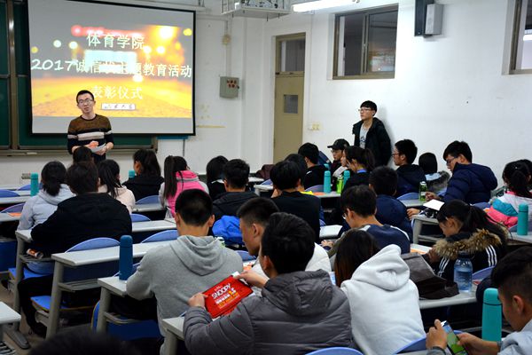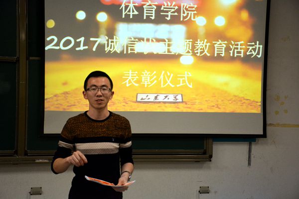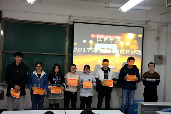 12月21日,新葡萄AMG官方网站在兴隆山校区举行2017年秋季“诚信状”主题教育活动表彰大会,新葡萄AMG官方网站团委书记范泽斌出席表彰仪式,并为学院2015级、2016级和2017级社会体育指导与管理专业的54名同学进行表彰。仪式由体育学院学生会自律部部长朱念东主持。