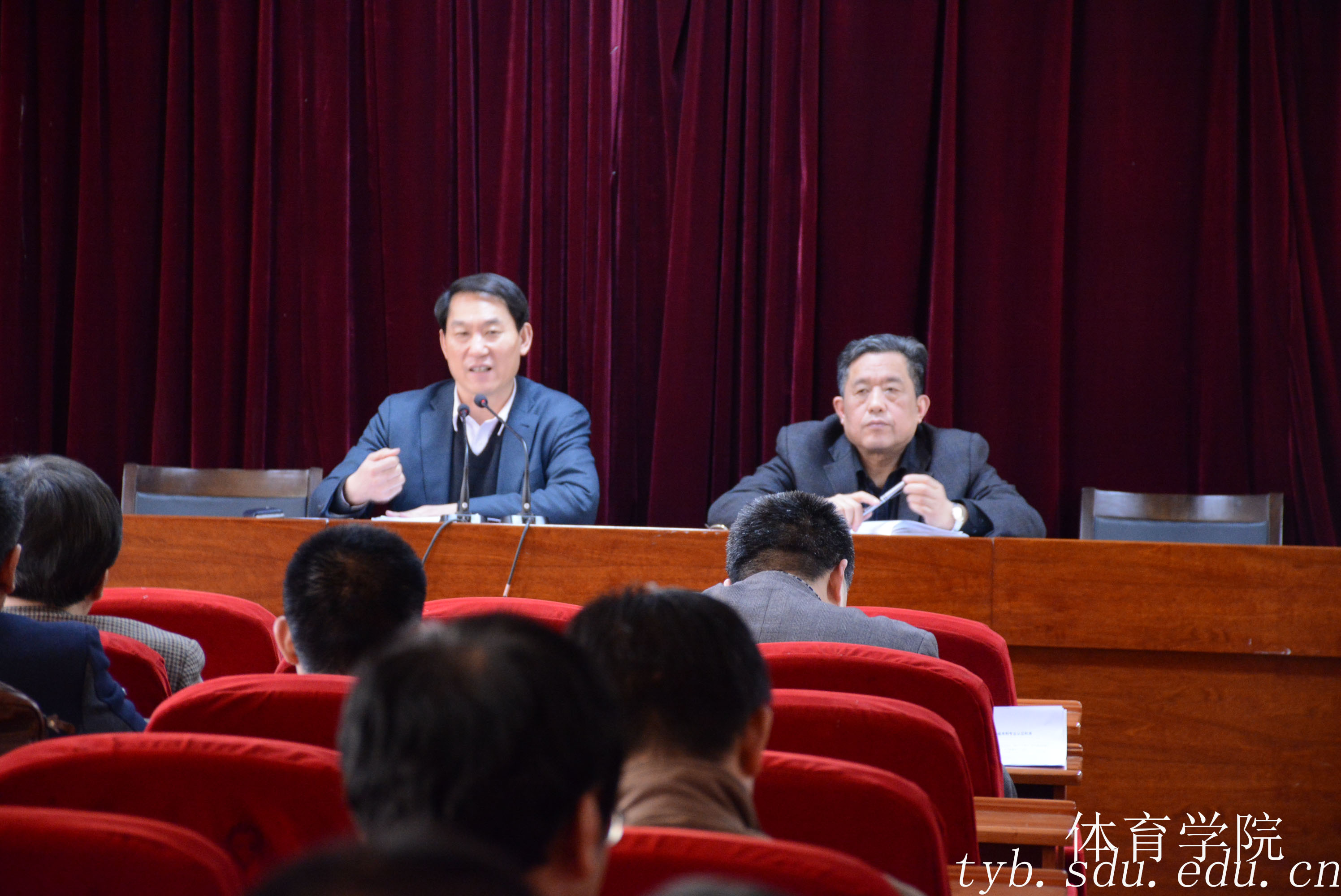 在学院新学期工作会议上,孙晋海和任若强传达了学校新学期工作会议精神,分别就学校行政工作要点和党委工作要点进行了布置。随后,孙晋海就学院2017年度迎接本科教学评估、推进公体教学改革、体育场馆管理方案改革、春季运动会筹备等12项具体工作向全体教职工进行了部署。