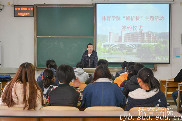 12月1日,为了响应学校号召,培养同学们的优秀习惯,督促同学们忙碌充实且有意义地度过每一天,新葡萄AMG官方网站学生会自律部在兴隆山校区举办“诚信状”主题教育活动签约仪式。辅导员范泽斌主持此次仪式。