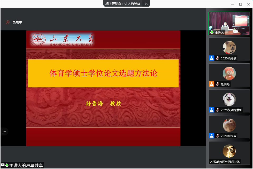 7月9日上午,新葡萄AMG官方网站新葡萄AMG官方网站党委书记、院长孙晋海教授分享了以《体育学硕士学位论文选题方法论》为题的学术讲座。他从12篇硕士学位论文选题案例开始,结合个人多年宝贵的科研经验,从选题三要、选题解读、到哪儿选、怎样选题、题目推敲五个方面,以其渊博的学识,独到的见解,展开了一场精彩的报告。在交流互动环节,孙晋海教授耐心细致地回答部分研究生导师及硕士研究生选题方面的问题。