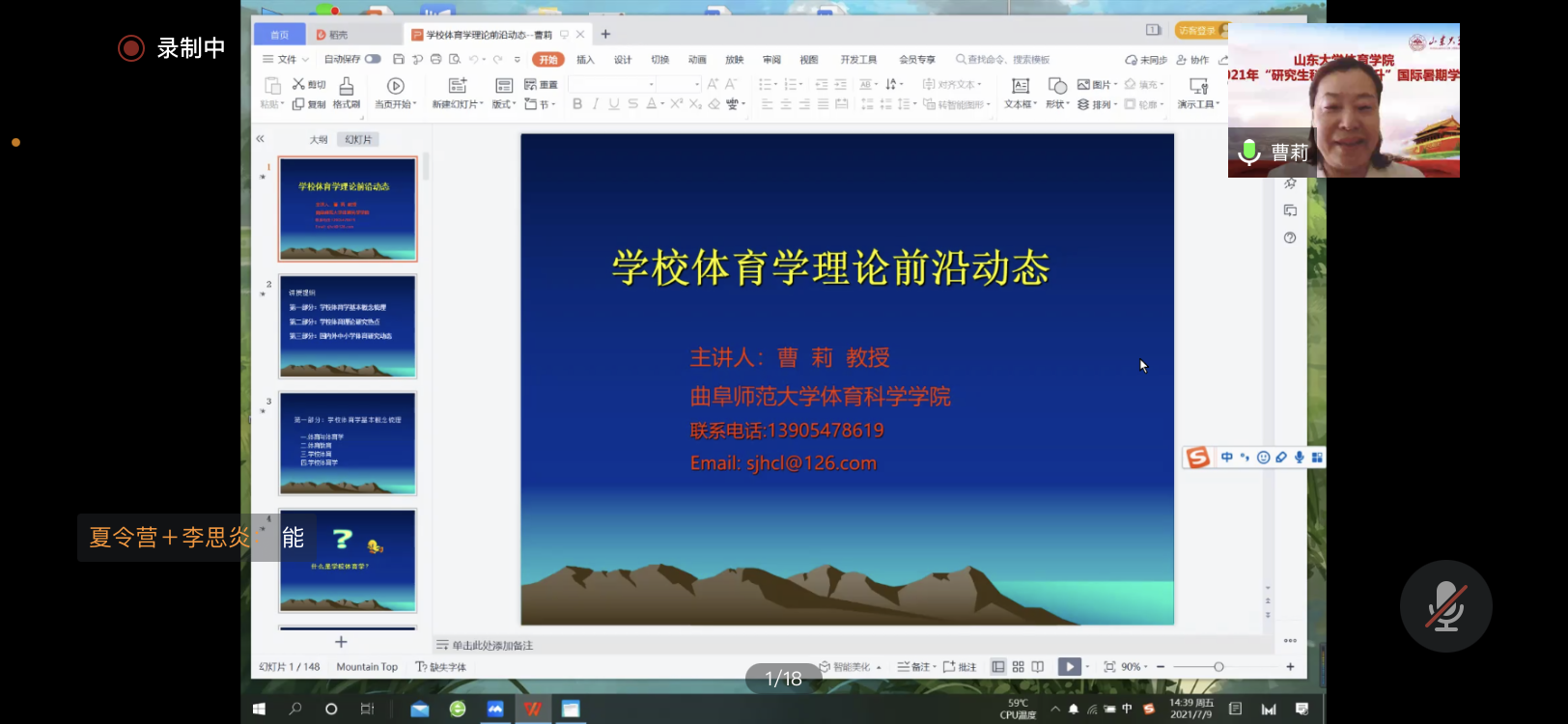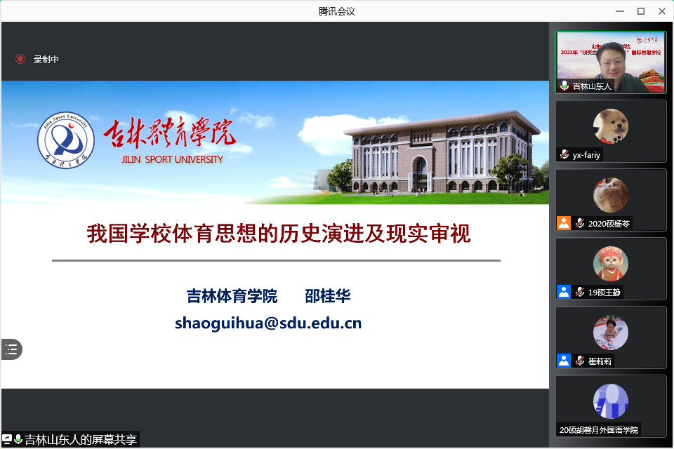 7月17日,吉林新葡萄AMG官方网站副校长邵桂华教授受邀做客暑期学校,作了题为《我国学校体育思想的历史演进及现实审视》的主题讲座。邵桂华教授对当前中国学校体育思想的发展历程进行了详细的介绍。他首先从中国古代的体育教学思想开始讲起,说道老子的奠基于“道”之上的“自然养生体育”是中国古代体育思想的主要力量。邵教授接着从以政治为中心的体育教学思想、以技术和技能为中心的体育教学思想、以全面发展为中心的体育教学思想和以健康第一为中心的体育教学思想等阶段分别进行了介绍分析。随后,邵教授对中国学校体育思想进行了剖析。他认为,“工具主义”试图以一个确定性的目标和强有力的控制来应对表现出更多不确定性和分叉行为的复杂性体育教学。他提出,要用复杂性的思维和方法来看待和处理呈现出复杂性特点的学校体育教学,需要用系统科学的方法与思路,去建立起自组织的体育教学思想体系。