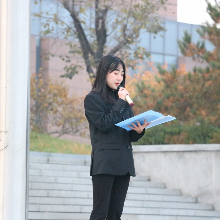 学校国旗护卫队迈着铿锵有力的步伐护送国旗入场。伴随着庄严的国歌声,五星红旗冉冉升起,全体人员向国旗行注目礼、高唱国歌。新生团支书代表郑翊琳发表了题为“七一精神,代代相传”的国旗下演讲。向新葡萄AMG官方网站学子们提出了三点要求:当好百年历史的阅读者,当好红色精神的传播者和当好伟大事业的建设者,呼吁全体学生以“功成不必在我”的精神境界和“功成必定有我”的历史担当,扛起重任、冲锋在前,在自己的岗位上不断发光发热,奉献青春。听完演讲后有同学感慨道,“很幸运自己生长在一个伟大的国度,听演讲时,我内心激动万分,一种难以用言语形容的澎湃感油然而生。不论我们身在何方,一腔爱国的热血是沸腾的,爱国之情是真挚的。国运昌盛,国旗飘扬,我将努力做到这三点要求,争做实现中华民族伟大复兴的建设者!”