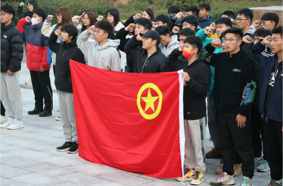 团支书李文杰带领大家进行入团宣誓,同学们高举右手,慷慨激昂地表达了对中国共产党地拥护,铿锵誓言响彻校园。青年兴则国家兴,青年强则国家强,同学们立志做到只争朝夕、不负韶华,努力成为堪当民族复兴重任的时代新人,让青春在不懈奋斗中绽放绚丽之花。