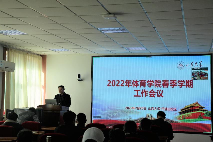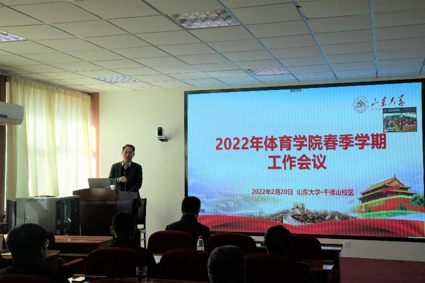 孙晋海首先传达了郭新立书记和樊丽明校长在新学期工作会议上的讲话精神,并肯定了全体教职工在2021年的工作成绩。学院不仅实现了学科排名持续跨越,并从科学研究、师资队伍建设、人才培养质量、高水平运动队建设、课程建设、体育场馆服务等方面实现重要突破,同时,疫情防控期间的新葡萄体育育人模式得到教育部肯定。