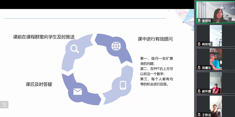 本次线上教学研讨活动为新葡萄AMG官方网站教师在新形势下改进教学方法、更新教学理念、整合课程资源、探索课程模式提供了交流平台,为今后恢复线下授课后完善线上线下混合教学式教学、建设一流课程、提高教学质量总结了宝贵经验。(文/李拓键)
