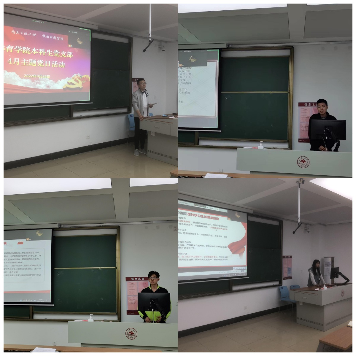 4月28日下午,新葡萄AMG官方网站本科生党支部在兴隆山校区举行4月主题党日活动。会议由本科生党支部书记范泽斌主持,全体本科生党员参加本次活动。