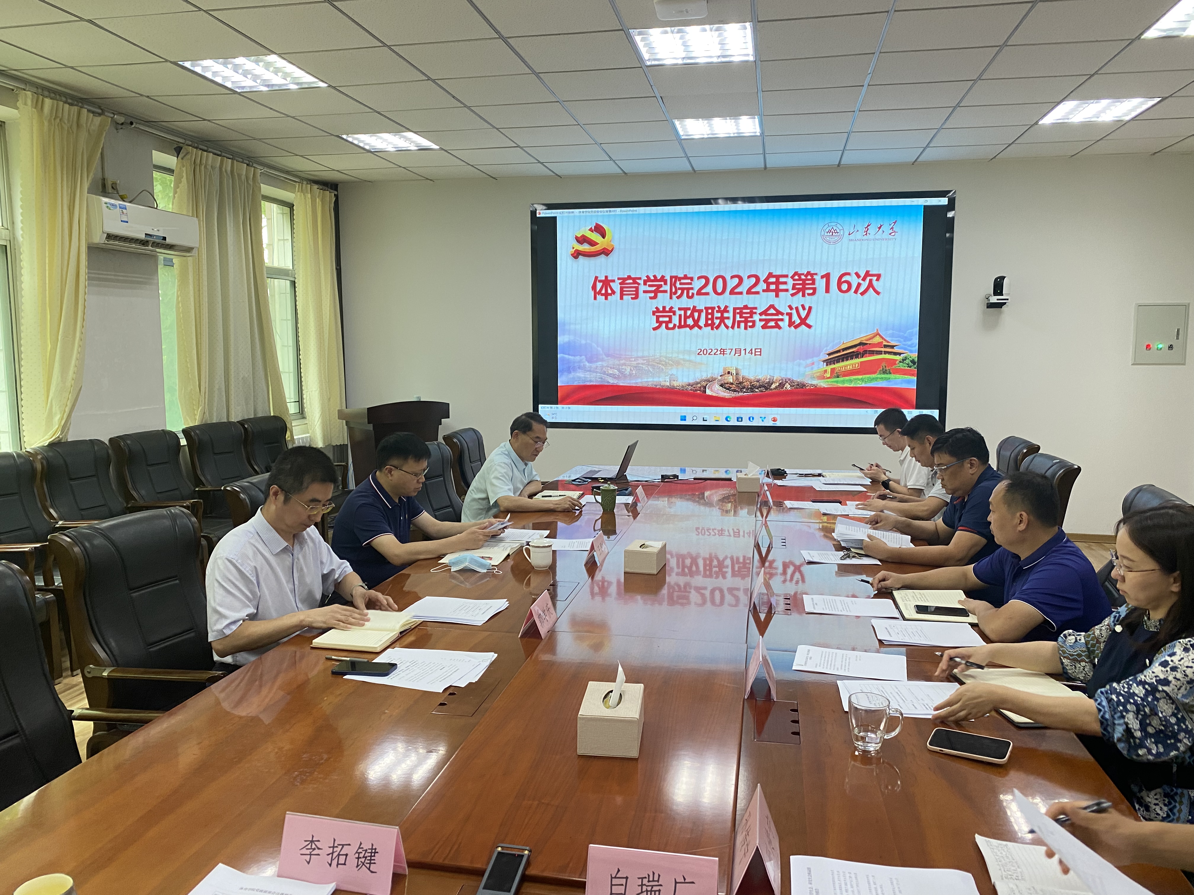 7月14日,新葡萄AMG官方网站2022年第8次党委会会议和2022年第16次党政联席会议在千佛山校区召开。学校党委副书记王君松列席会议。