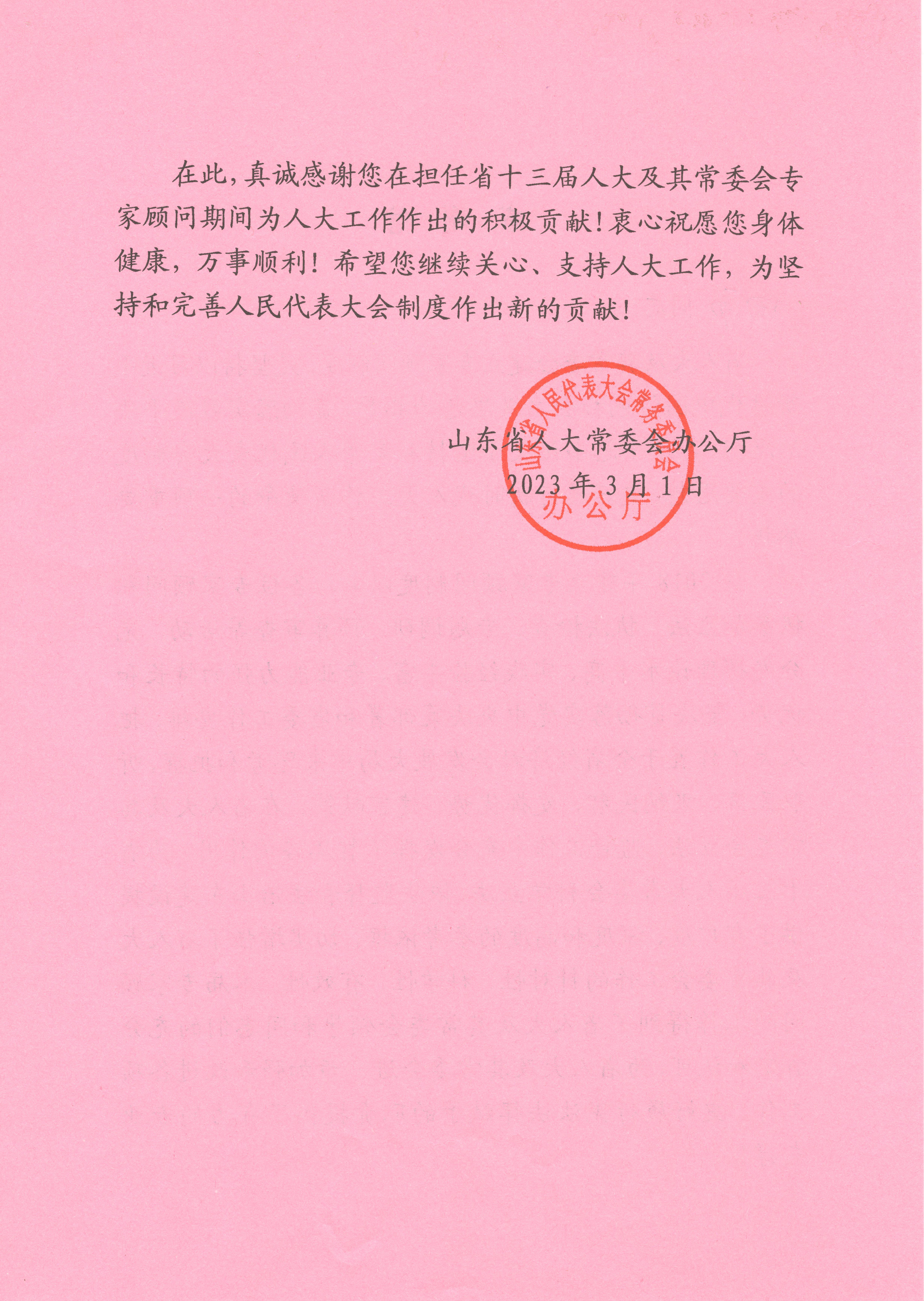 近日,新葡萄AMG官方网站收到山东省人大常委会办公厅发来的感谢信。感谢新葡萄AMG官方网站教师田雨同志在担任山东省十三届人大及其常委会专家顾问期间,积极参加山东省相关体育立法、释义编写、专题调研等活动,并于2019年10月14日、2021年4月12日参加了全国人大社会建设委员会在山东省开展的《中华人民共和国体育法(修订)草案》立法调研,田雨同志就体育仲裁、全民健身、青少年和学校体育等提出的提出很多建设性的意见建议,得到全国人大体育法修订立法调研组、省人大领导和同志们的肯定和认可,为人大工作作出贡献。