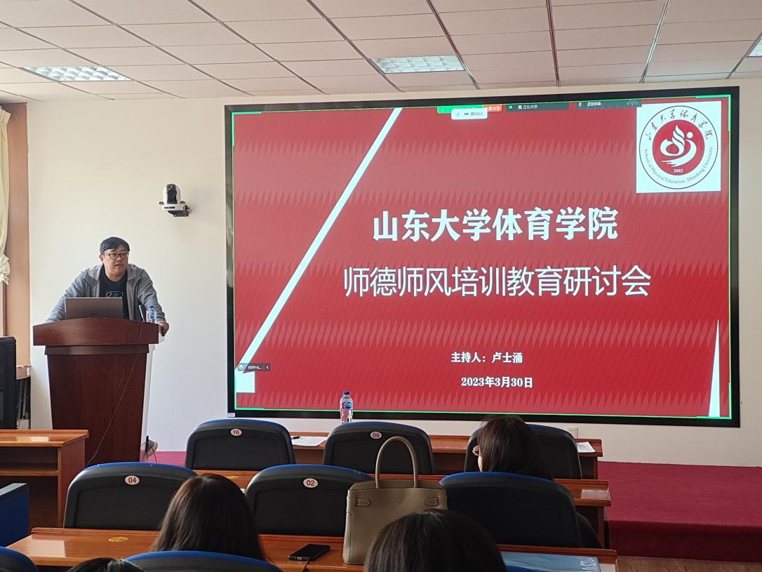 为了进一步了解当前大学生的心理特点,提升教师教学与沟通策略,促进教学工作的针对性、实效性,提升教师们构建和谐师生关系的能力,同时进一步规范教师职业行为,切实加强教师队伍建设,全面提高教师职业道德水平和职业素养,3月30日下午新葡萄AMG官方网站开召开本科教学培训会。培训会上,新葡萄AMG官方网站虚拟教研室邀请新葡萄AMG官方网站学生心理健康教育与咨询中心咨询师曹丽丽做了“当前大学生心理特点及教学沟通策略”的专题讲座。会议由卢士涌主持,并做了题目为“师德师风培训与体育教学特点”的专题报告。新葡萄AMG官方网站负责本科教学任务的公共体育教师和社会体育与指导管理专业的全体教师通过线上、线下两种方式出席本次活动。