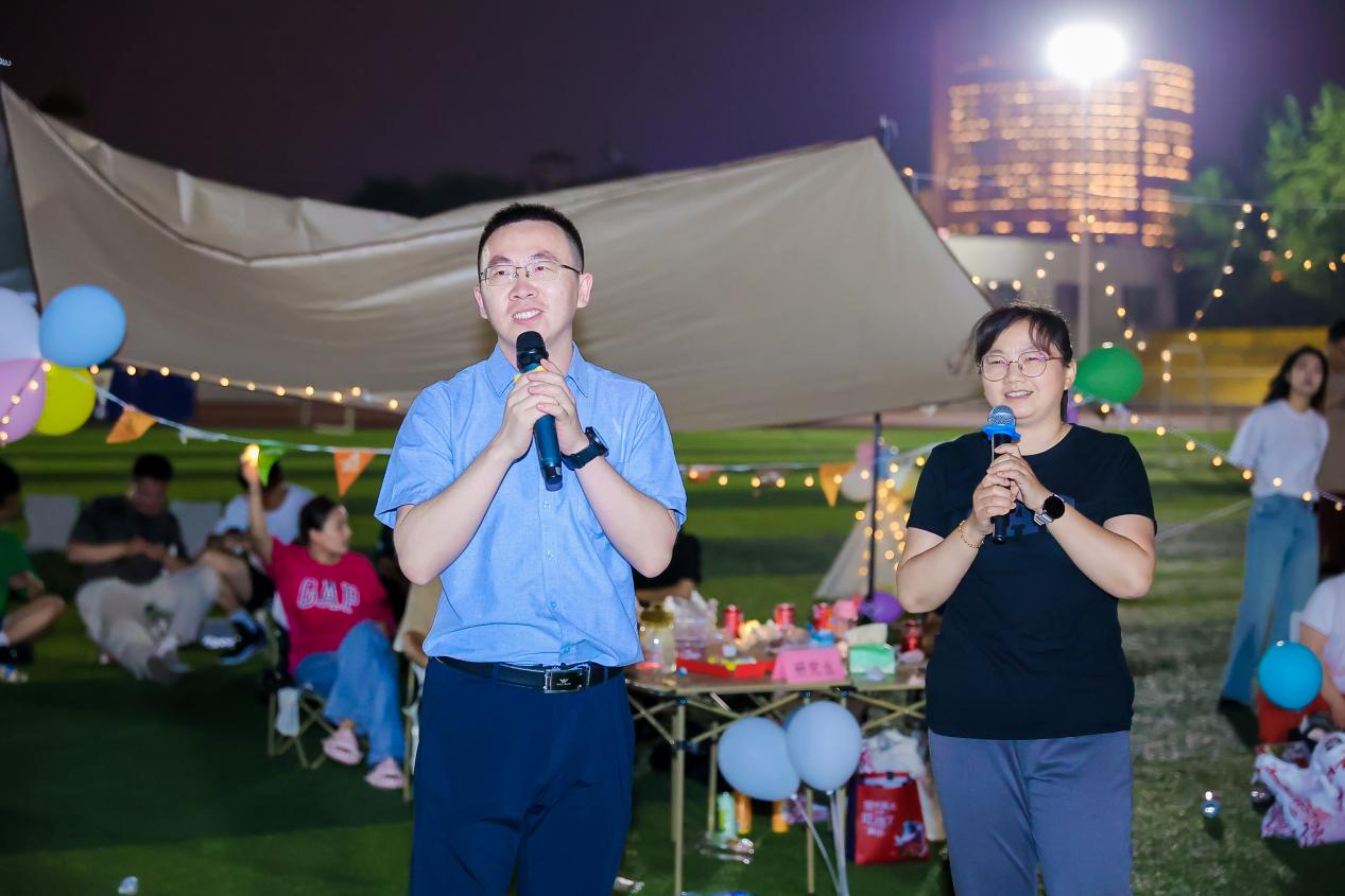6月19日晚,新葡萄AMG官方网站于千佛山校区操场举行“无畏将来,逐梦前行”2023届毕业生草地露营音乐会。新葡萄AMG官方网站党委副书记卢士涌、副院长高岩等教师代表及全体2023届毕业生参与此次活动。活动由2023届硕士毕业生杨紫坤、韩夙悦,本科毕业生鄢浩然、杜国莉主持。
