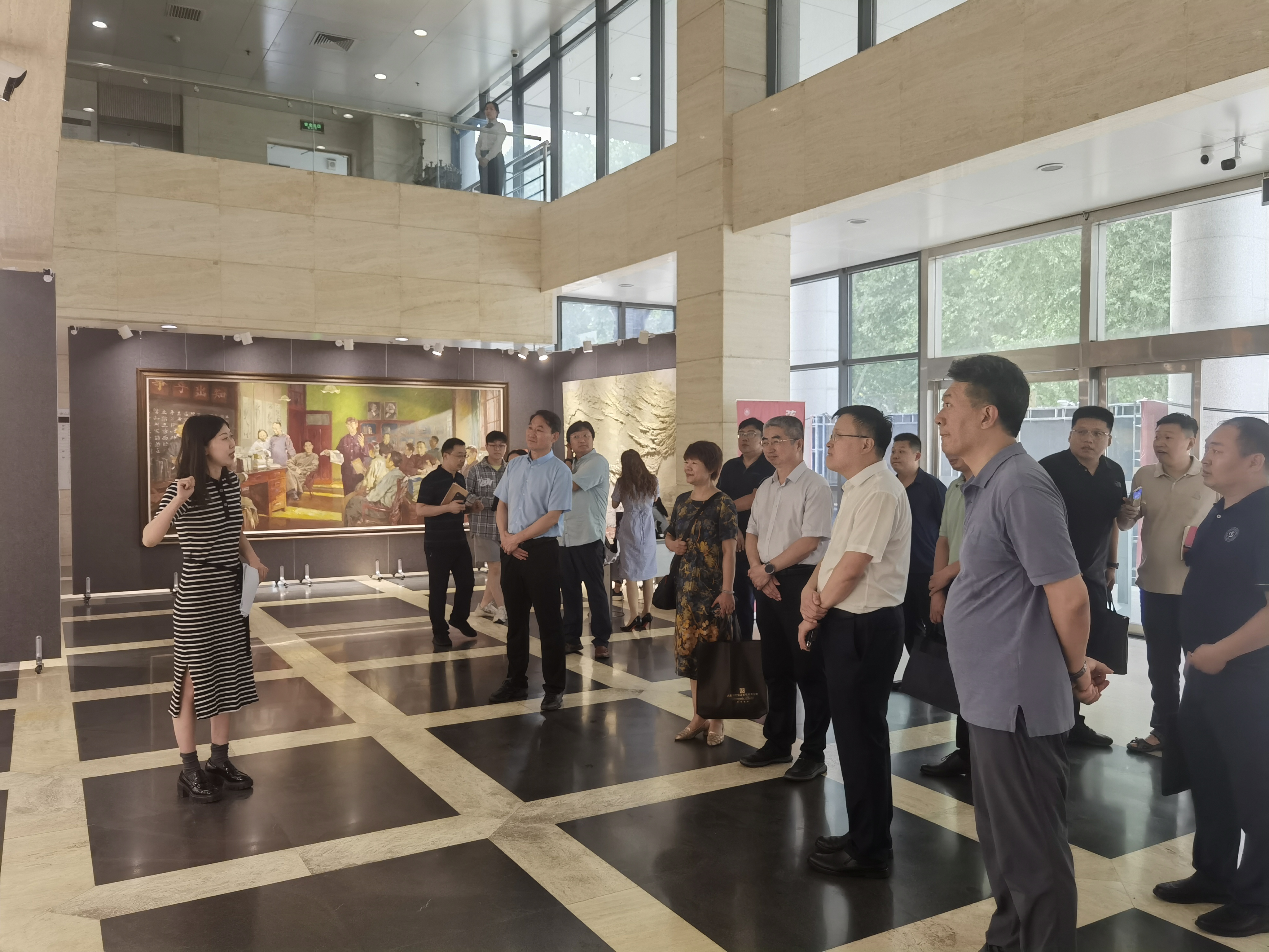 与会人员首先参观了在中心校区知新楼举办的“新葡萄AMG官方网站重大主题美术大展”,大展包括“新葡萄AMG官方网站重大校史主题美术创作”和“新葡萄AMG官方网站重大科研成果主题美术创作”两个篇章,作品选择新葡萄AMG官方网站最具代表性的历史典故和历史人物为题材,将新葡萄人在救国、报国、强国进程中书写的创业史、发展史、奋斗史予以艺术性的展现。通过讲解,大家实地感受到了“家国情怀、担当精神、崇实品格、创新素养”的新葡萄基因,更深入理解“学思想、强党性、重实践、建新功”的总要求。