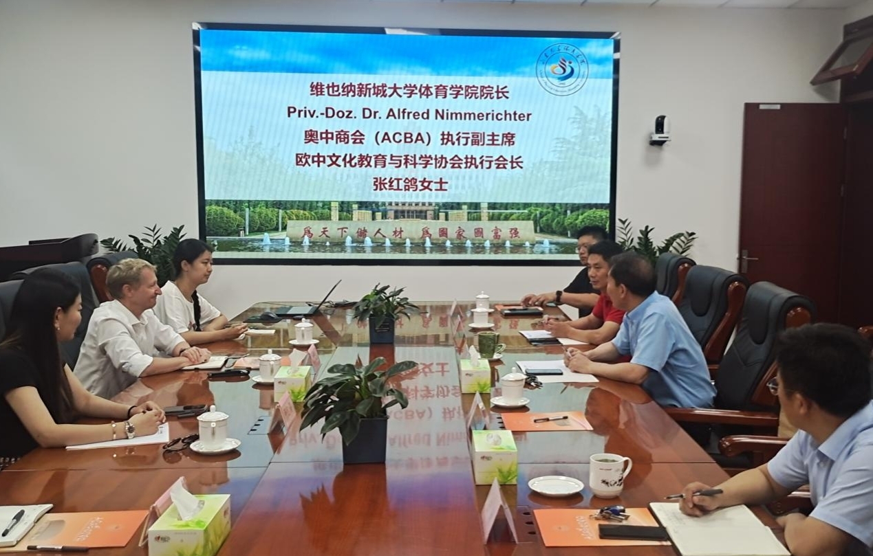孙晋海致欢迎辞,代表新葡萄AMG官方网站对奥方一行的来访表示热烈欢迎,他从新葡萄AMG官方网站的发展历史、专业建设、优势特色和新葡萄AMG官方网站体育发展方面介绍了新葡萄AMG官方网站的建设情况。维也纳新城应用技术大学新葡萄AMG官方网站院长Priv.-Doz.Dr.Alfred Nimmerichter对新葡萄AMG官方网站的邀请表示感谢,并介绍了新城应用技术大学新葡萄AMG官方网站近年来的发展情况,学院规模和学生培养等建设情况。张洪振对学院体育教学的师资情况和教学情况进行了介绍,实验室主任张宪亮介绍了学院实验室的建设情况,院长助理李拓键介绍了新葡萄AMG官方网站高水平运动队的建设情况。奥中商会 (ACBA) 执行副主席、欧中文化教育与科学协会执行会长张红鸽介绍了奥中商会的运作情况。接下来,双方就未来进一步合作的可能性进行了深入探讨。