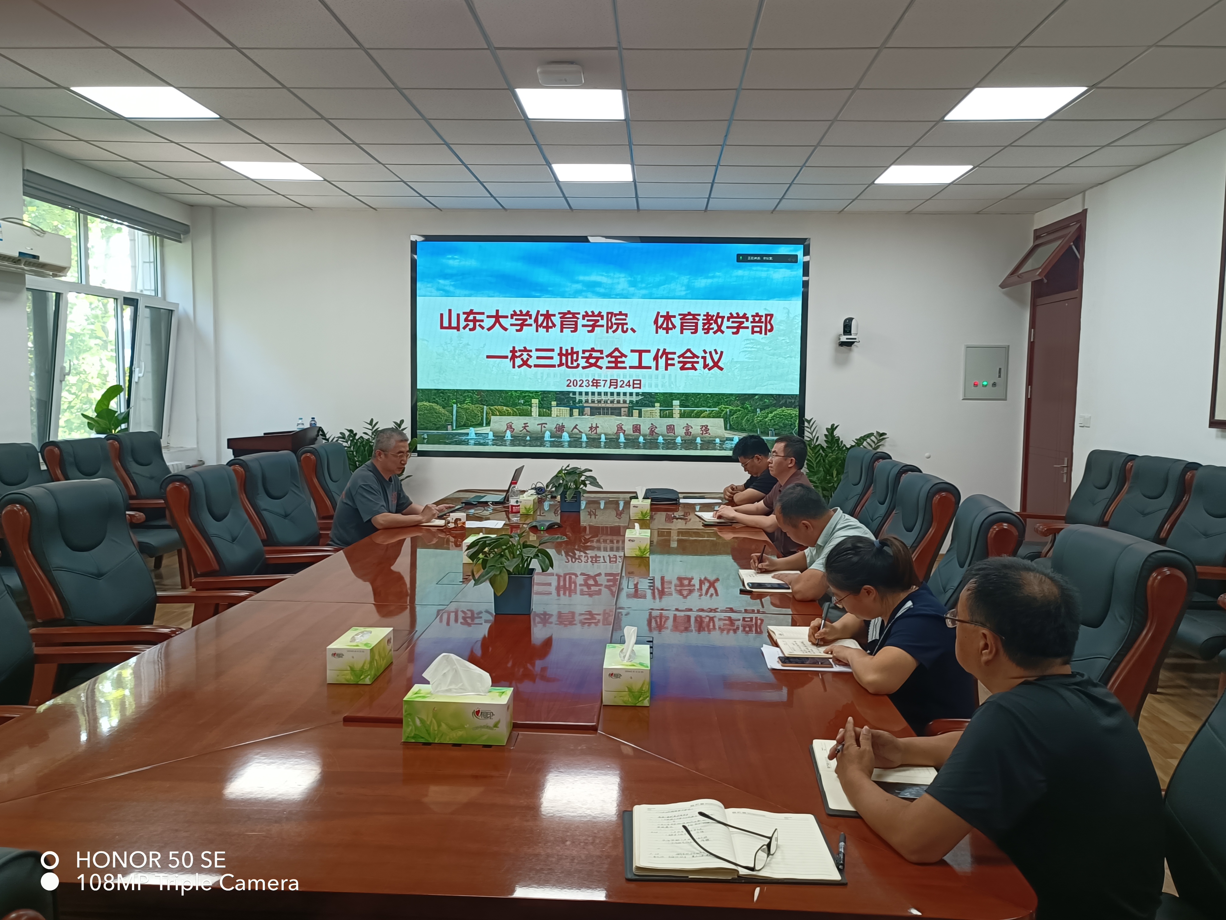7月24日下午,新葡萄AMG官方网站、体育教学部召开一校三地安全工作会议。新葡萄AMG官方网站党委书记郭学庆就近期学校体育安全相关工作进行了强调部署。