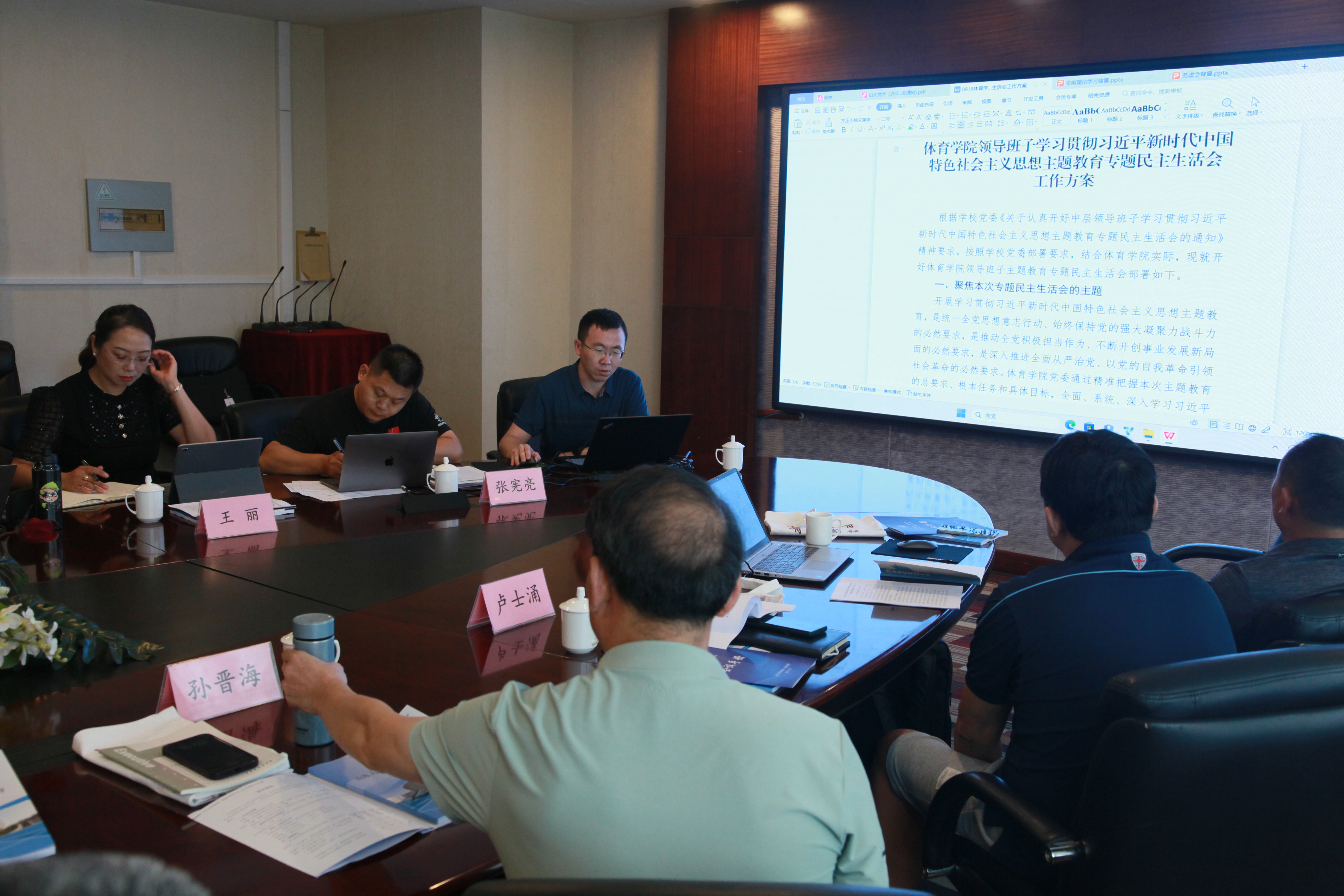 8月19日,新葡萄AMG官方网站、体育教学部联合举行主题教育专题民主生活会会前集体学习暨2023年第10次党委理论学习中心组集体学习。新葡萄AMG官方网站党委书记郭学庆主持会议。