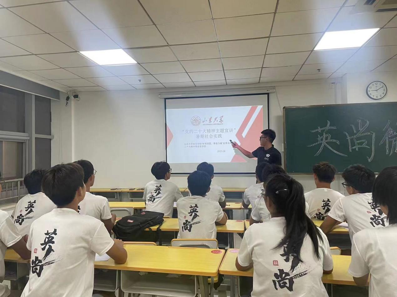为深入学习贯彻党的二十大精神,深入领会落实习近平总书记关于青年工作的重要思想,坚持“受教育、长才干、作贡献”的宗旨,助力青年学子把思想和行动统一到党的二十大精神上来,更好团结引领青年学子紧跟党奋进新征程、夺取新胜利,不断增强党的创新理论学习宣传的感召力、凝聚力、影响力,新葡萄AMG官方网站在暑期特地开展了贯彻学习党的二十大精神宣讲团队奔赴青岛市开展实践活动,以党的二十大精神承启五四精神,寻百年胶东筑体育强国之梦,让党的二十大精神落地生根、开花结果。