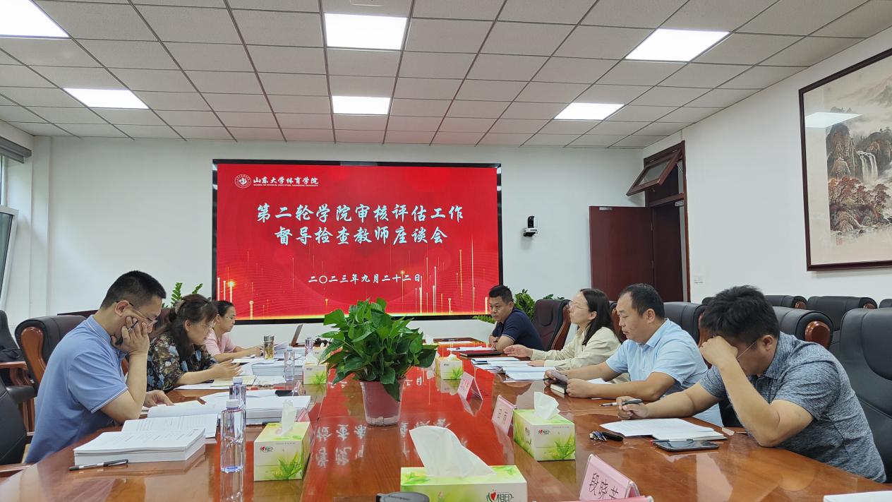 教师座谈会首先进行。副院长王先亮,院长助理张宪亮,社会体育指导与管理教研室主任田雨,副教授成会君,青年教师段晓芳、薛香莉参加座谈。李玉香首先从审核评估宣传落实等六个方面对学院工作开展情况进行了提问。接下来,在高岩的主持下,各位教师代表依次对自身负责的工作进行了分享汇报。最后,督导检查组专家指出了自评报告中依然存在的问题,听取新葡萄AMG官方网站教师代表发言,并对其中的一些问题进行了回答。