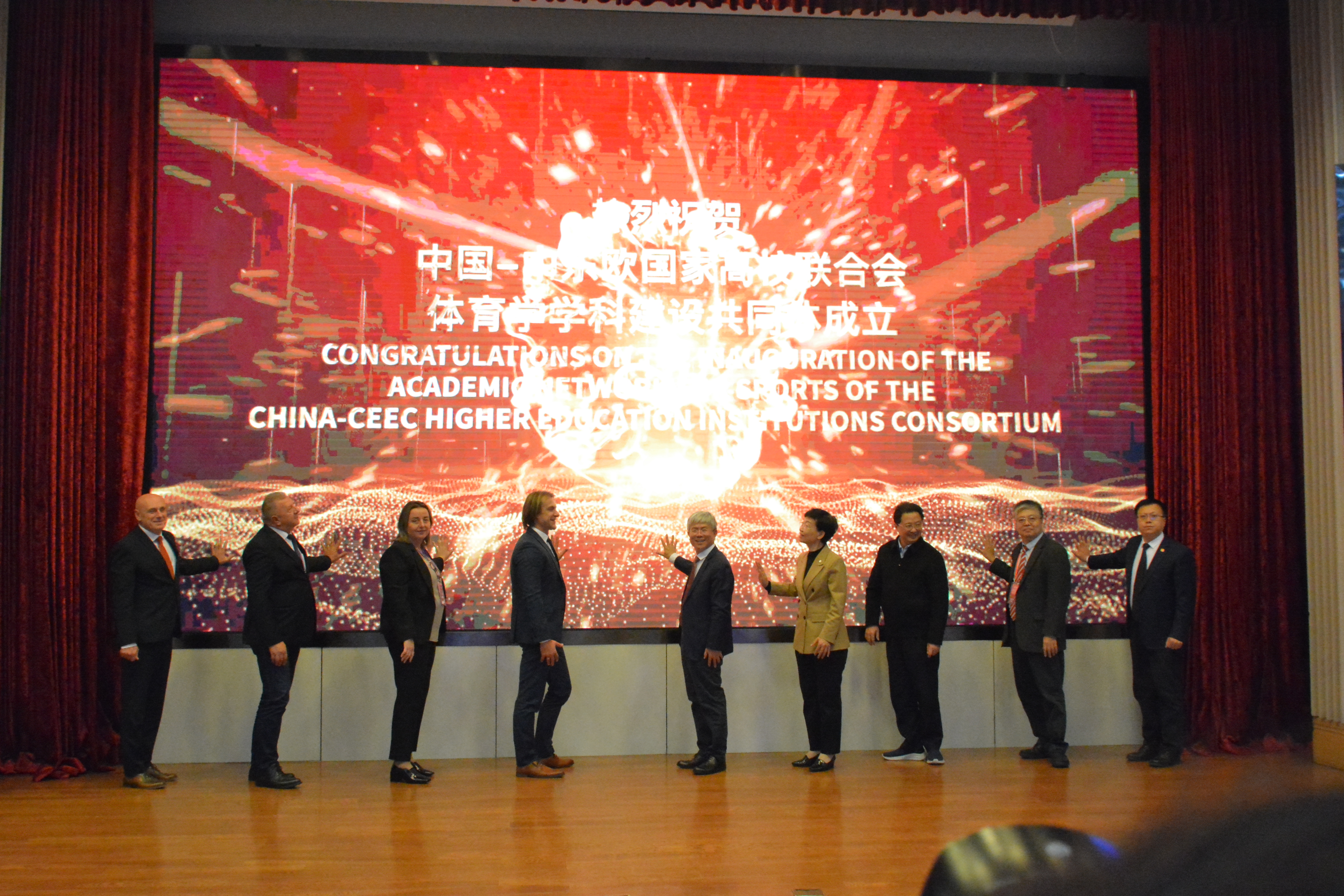 会上,李术才、孙晓筠、黄汉升、刘建亚、王君松、塞尔维亚普里什蒂纳大学-科索沃米特罗维察校长内博伊沙·阿尔西奇(Nebojsa Arsic)、塞尔维亚诺维帕扎尔州立大学校长扎娜·多利卡宁(Zana Dolićanin)、罗马尼亚阿拉德奥雷尔弗莱库大学副校长波帕·亚历山德鲁(Popa Alexandru)教授、波黑东萨拉热窝大学副校长马尔科·古塔利(Marko Gutalj)教授为中国—中东欧国家高校联合会体育学学科建设共同体揭牌。会上发布了《中国—中东欧国家高校联合会体育学学科建设共同体宣言》。