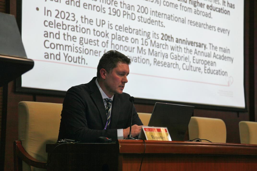 罗马尼亚阿拉德阿拉德奥雷尔·弗大学校长波帕·亚历山德鲁、塞尔维亚尼什大学体育与运动学院内纳德·斯托伊科维奇、斯洛文尼亚普里莫尔斯卡大学卫生科学学院马特伊·普列夫尼克、波黑巴尼亚卢卡大学亚历新葡萄·库克里克、塞尔维亚科索沃米特罗维察普里什蒂纳大学新葡萄AMG官方网站院长维罗柳布·斯坦科维奇、波黑东萨拉热窝大学校长马尔科·古塔利分别从地理位置、历史沿革、体育项目、新葡萄AMG官方网站情况、体育学科建设等多个角度出发,对各自的院校背景与体育学科发展进行了介绍。