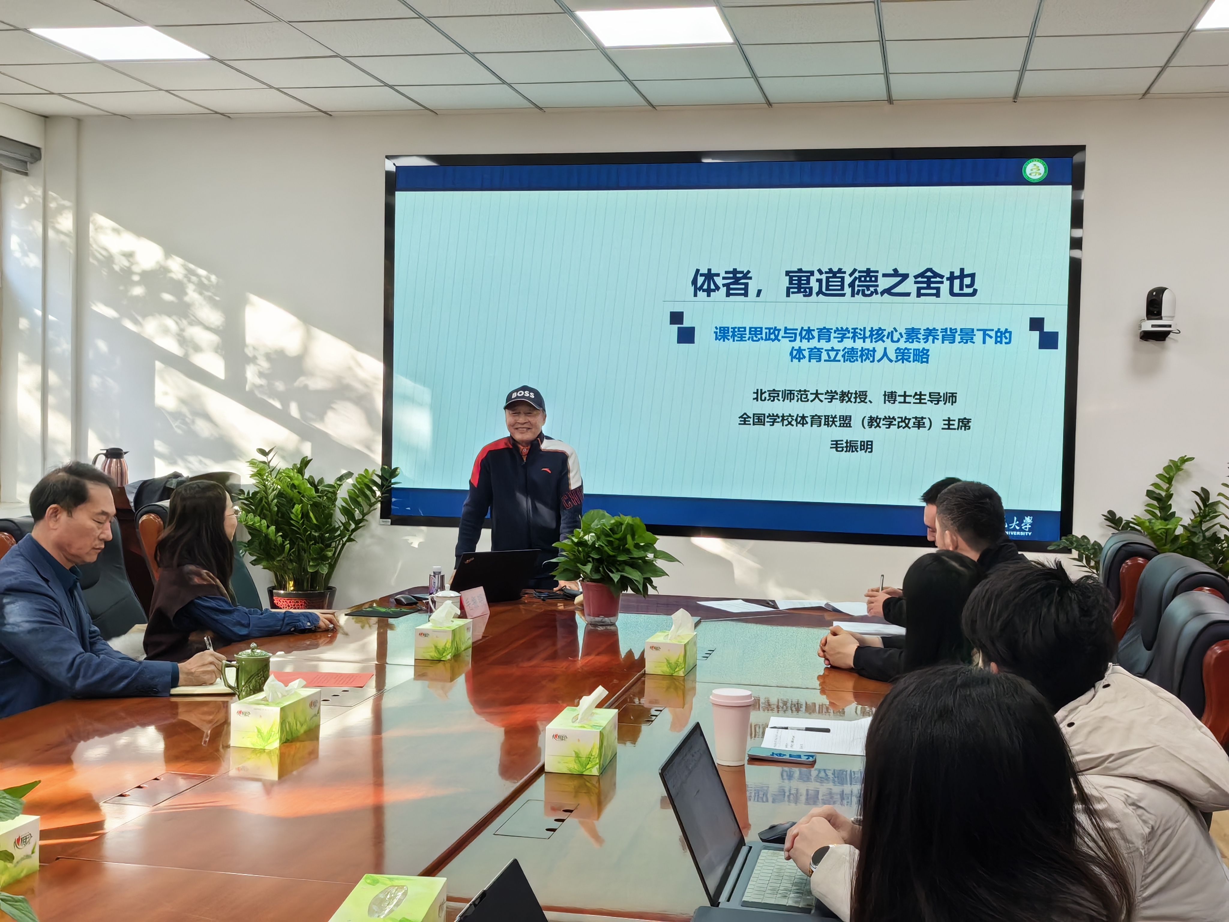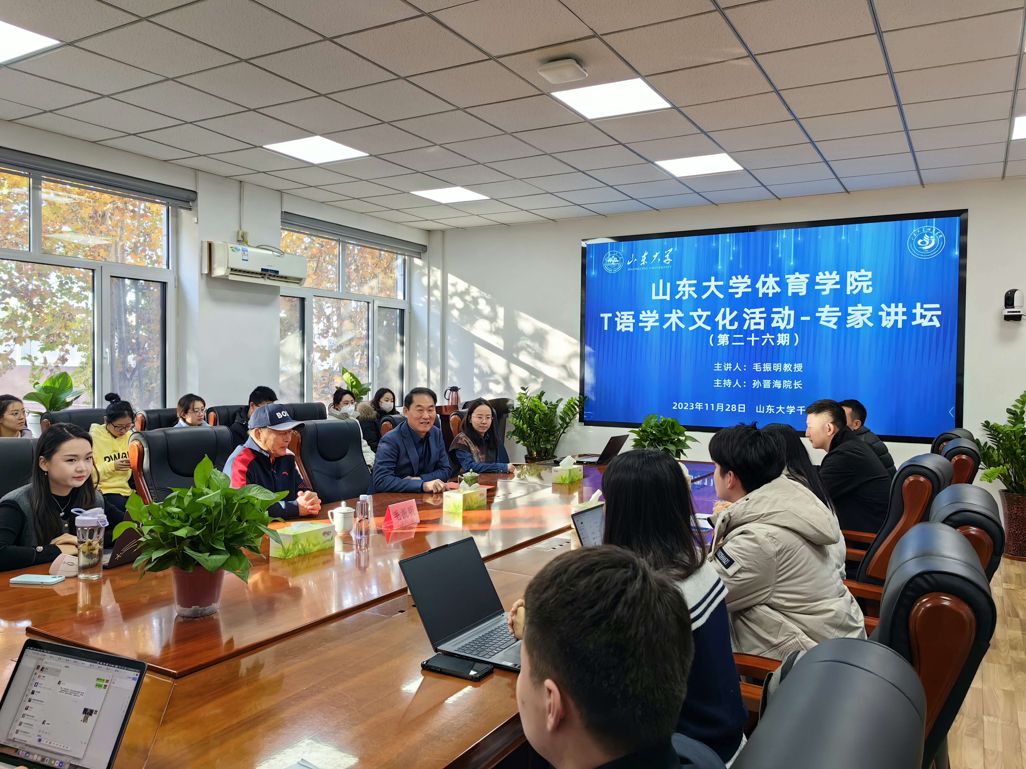 11月28日上午,新葡萄AMG官方网站举办第二十六期T语学术文化活动—专家讲坛。本次讲坛邀请了北京师范大学毛振明教授作题为《寓道德之舍也-论体育立德树人与课程思政》的学术报告。讲坛由新葡萄AMG官方网站院长孙晋海主持,副院长高岩、全体博士研究生以及二三年级硕士研究生参加活动。