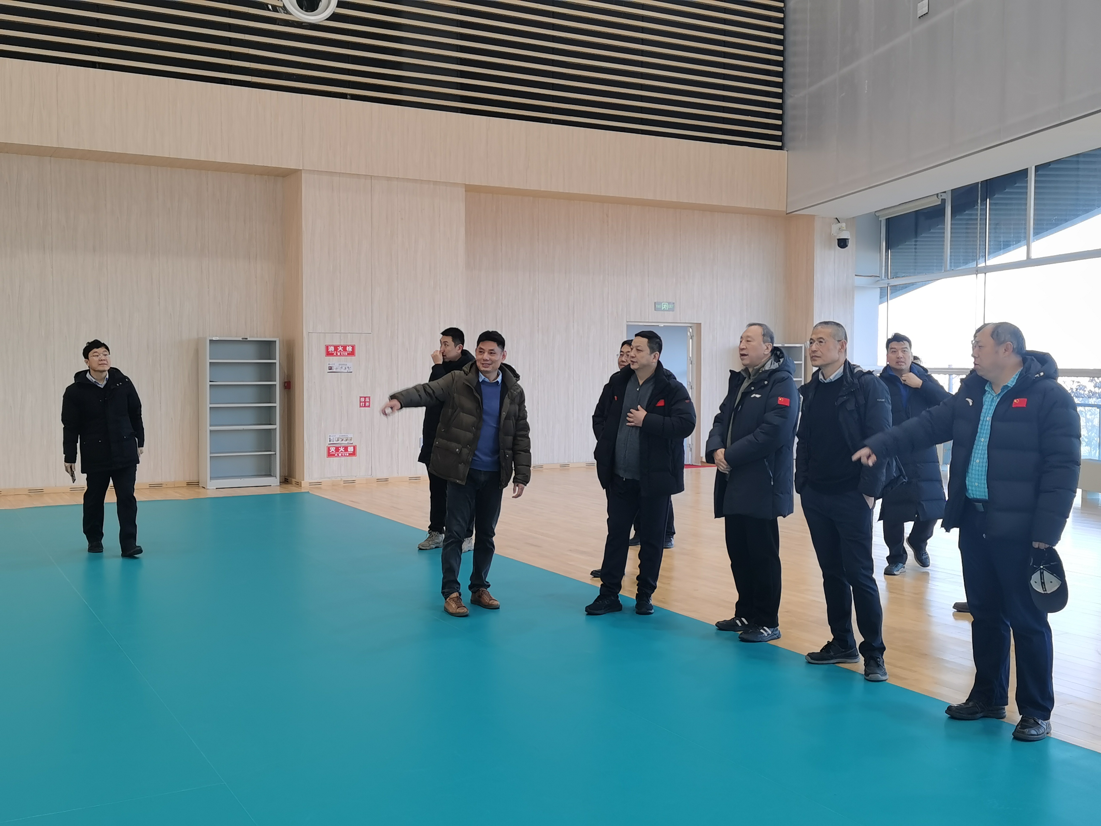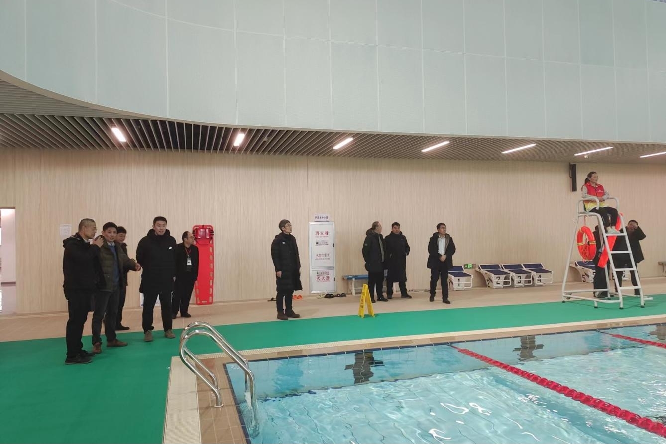 评估专家组一行先后对体育馆羽毛球馆、游泳馆、健身中心、篮排球馆以及比赛馆区配套功能房间进行实地考察,随后在会议室听取体育馆情况汇报并进行评估交流。