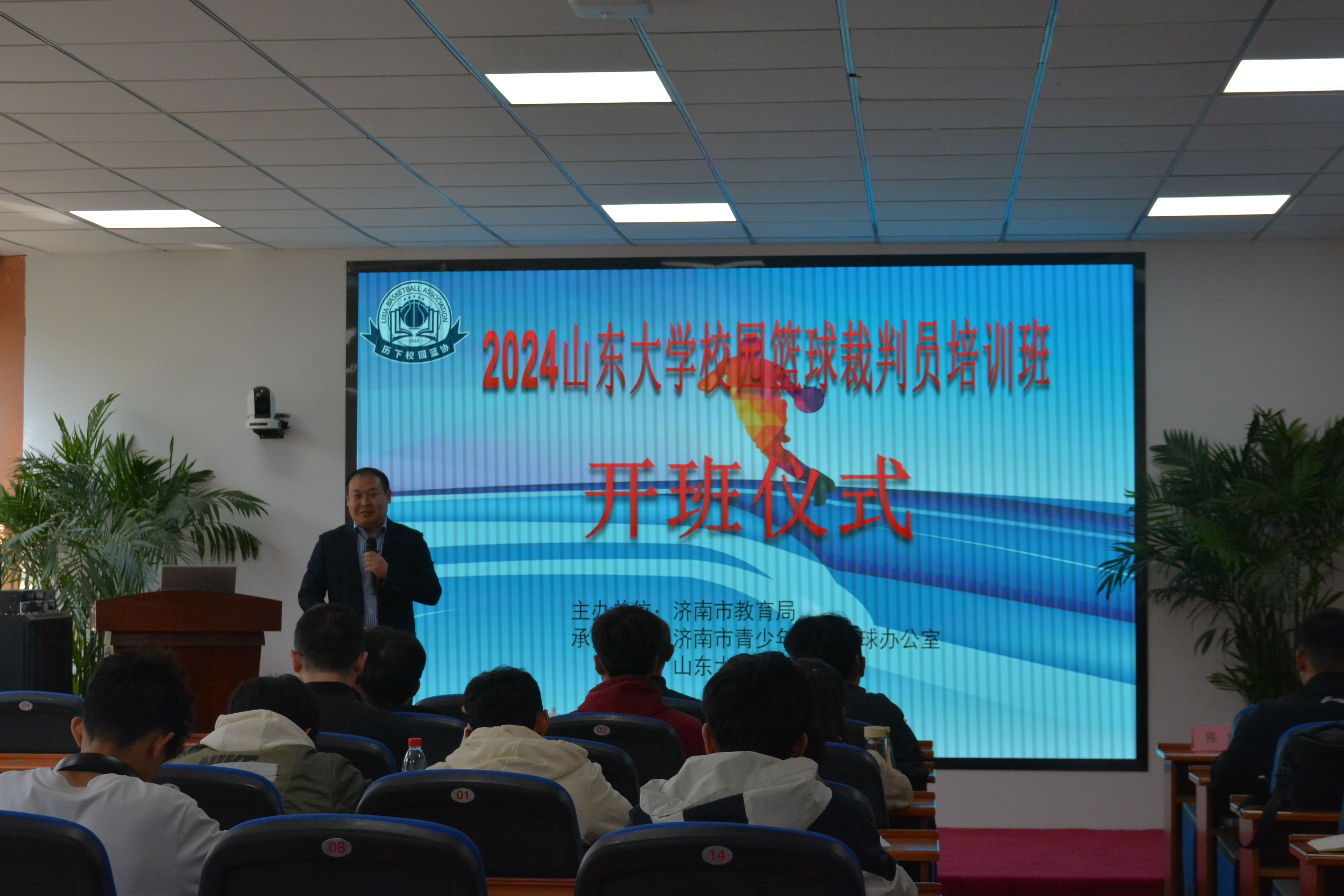为促进校园篮球创新发展,提高新葡萄AMG官方网站篮球执裁水平,4月7日,由济南市青少年校园篮球协会与新葡萄AMG官方网站联合举办的2024年新葡萄AMG官方网站校园篮球裁判员培训班开班仪式在新葡萄AMG官方网站千佛山校区新葡萄AMG官方网站讲学厅举行,培训班成员的招募面向新葡萄AMG官方网站(校本部)各学院,40余名学生参加本期培训,新葡萄AMG官方网站副院长王先亮参加仪式并讲话。