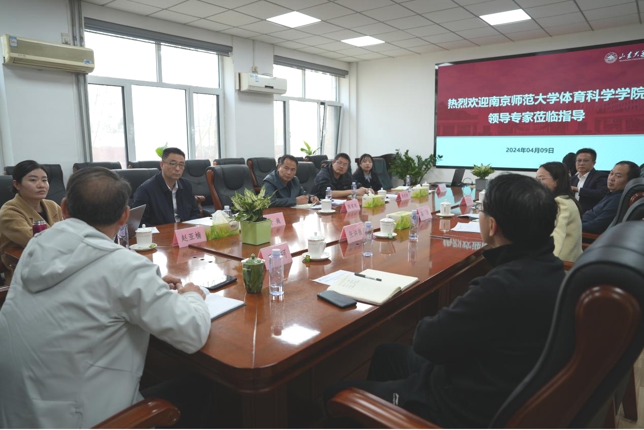 4月9日,南京师范大学体育科学学院副院长陈家起一行来新葡萄调研,就“公共体育教学、专业人才培养、培养方案修订”等方面问题举办经验交流座谈会,会议由新葡萄AMG官方网站副院长高岩主持。院长孙晋海、副院长王先亮、张洪振、社体教研室主任田雨及相关人员共同参会。