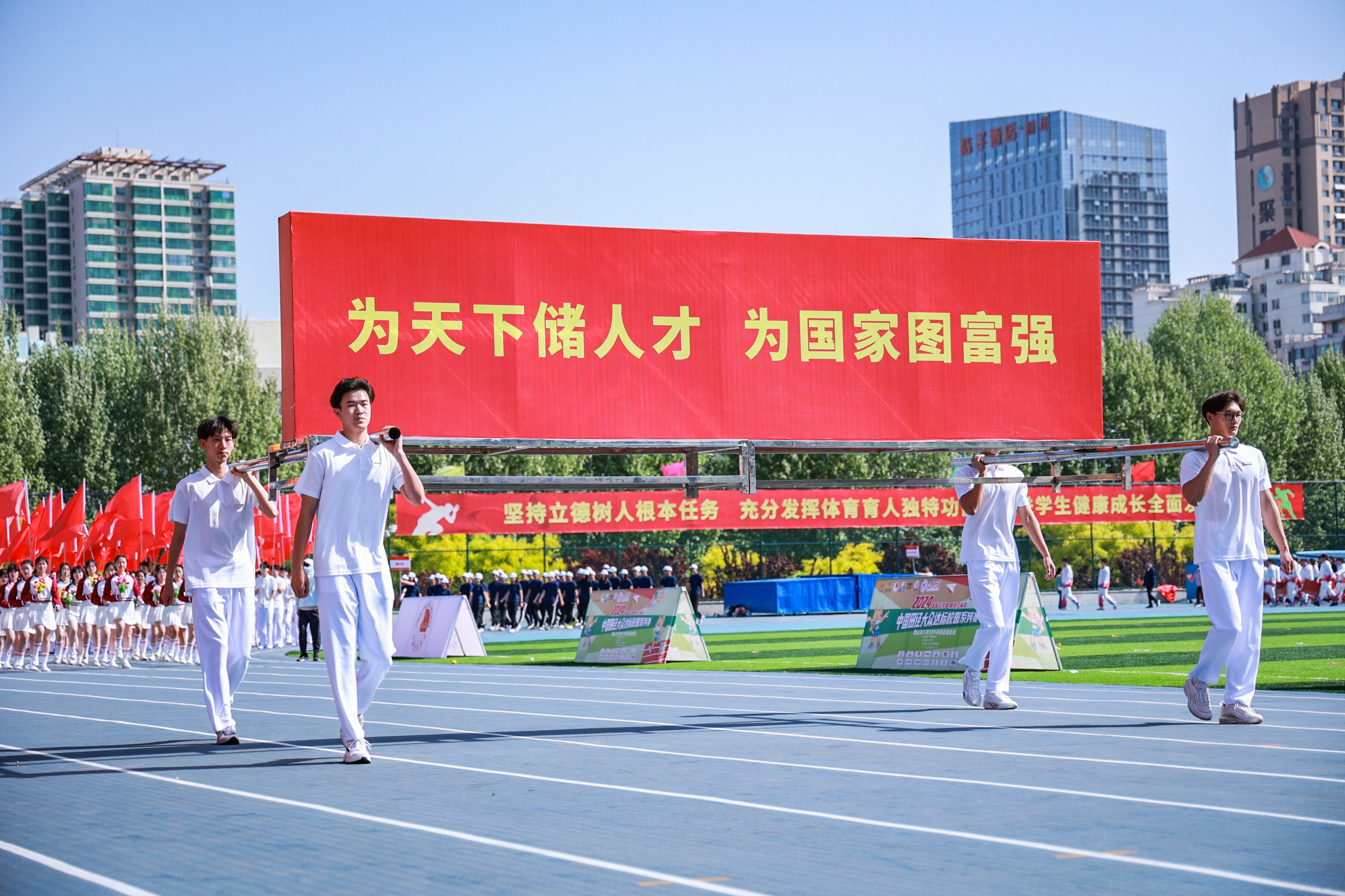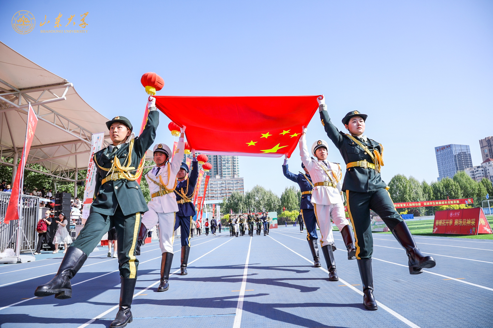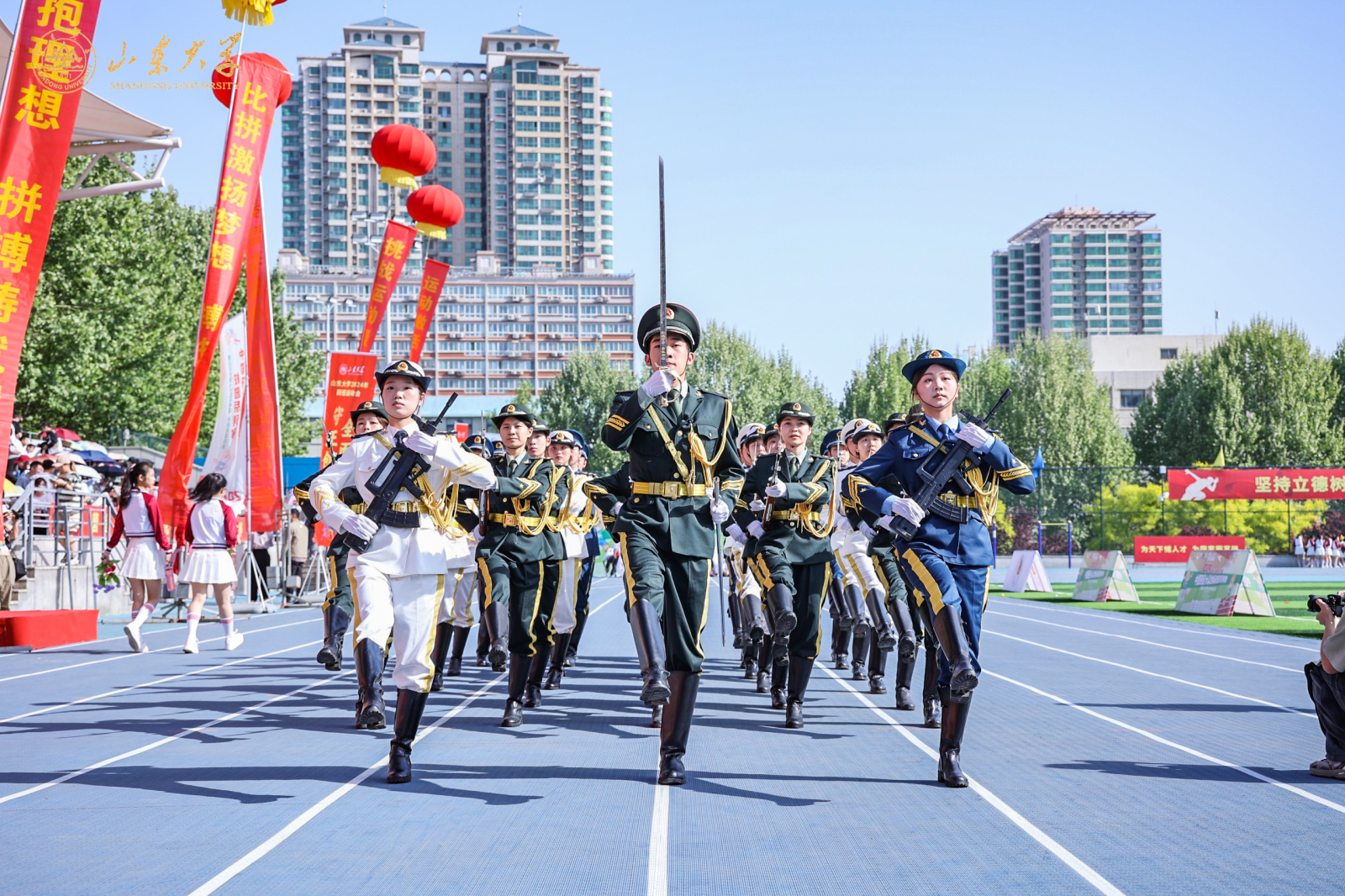 开幕式上,伴随着轻快活泼的《沂蒙山小调》,国旗方队、国旗护卫队、由6位高层次青年学者护卫的校旗方队、由6位体育学生达人护卫的校徽方队,以及标语、花束、红旗等方队率先走过主席台。随后,裁判员、运动员方队迈着矫健的步伐依次入场。他们结合学科特点和专业特色,精心准备标语和口号,并进行精彩的表演,层出不穷的花式造型和新颖创意引起现场观众的热烈响应,充分展示出“人人爱运动,无处不体育”的文化氛围。