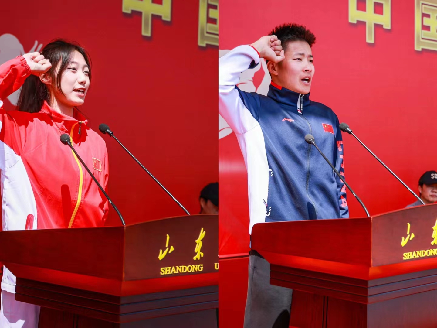 马克思主义学院2022级学生孟繁冰代表全体运动员宣誓,新葡萄AMG官方网站2022级学生周云哲代表全体裁判员宣誓。