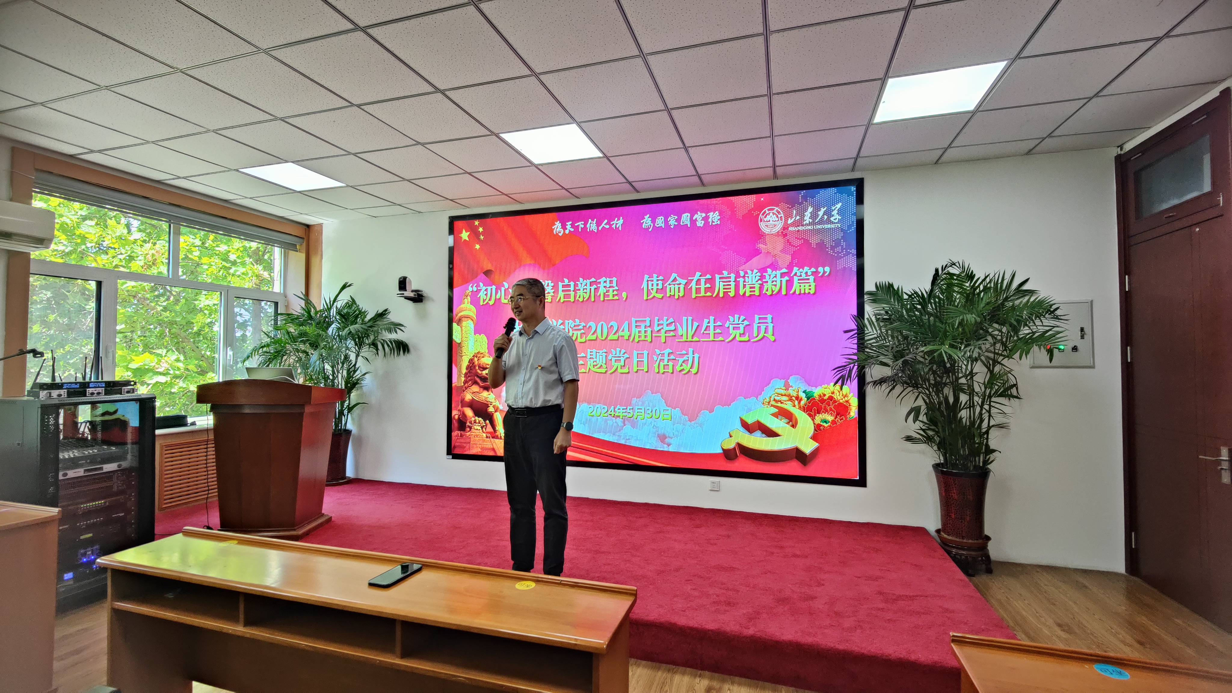 为进一步强化毕业生党员教育,激励毕业生党员坚定理想信念,牢记党员身份,5月30日新葡萄AMG官方网站在千佛山校区举行了“初心如磐启新程,使命在肩谱新篇”2024届毕业生党员主题党日活动。新葡萄AMG官方网站党委书记郭学庆、学院2024届全体毕业生党员参加本次活动,活动由学院团委书记范泽斌主持。