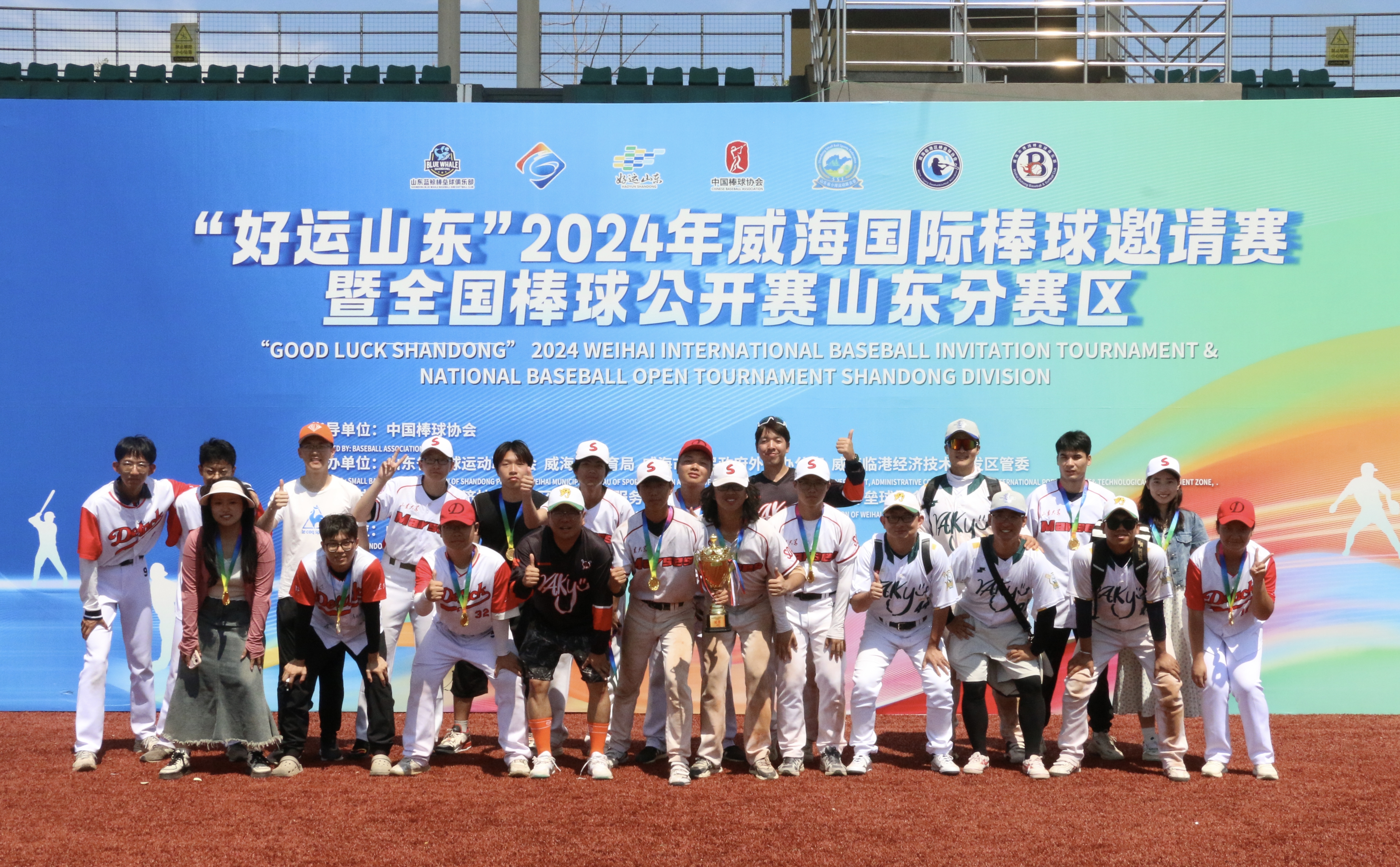 6月10日,“好运山东”2024年威海国际棒球邀请赛暨全国棒球公开赛山东分赛区比赛在临港区威海蓝鲸棒球场圆满落下帷幕,比赛由中国棒球协会指导,山东省小球运动联合会、山东省棒垒球协会、威海市体育局、威海市人民政府外事办公室、威海临港区管委主办。来自4个国家的18支球队、400多名运动员在这里奉献了一场场精彩绝伦的比赛。由威海、济南、青岛三校区棒垒球社团联合组成的新葡萄AMG官方网站代表队喜获本次比赛高校棒球组冠军。