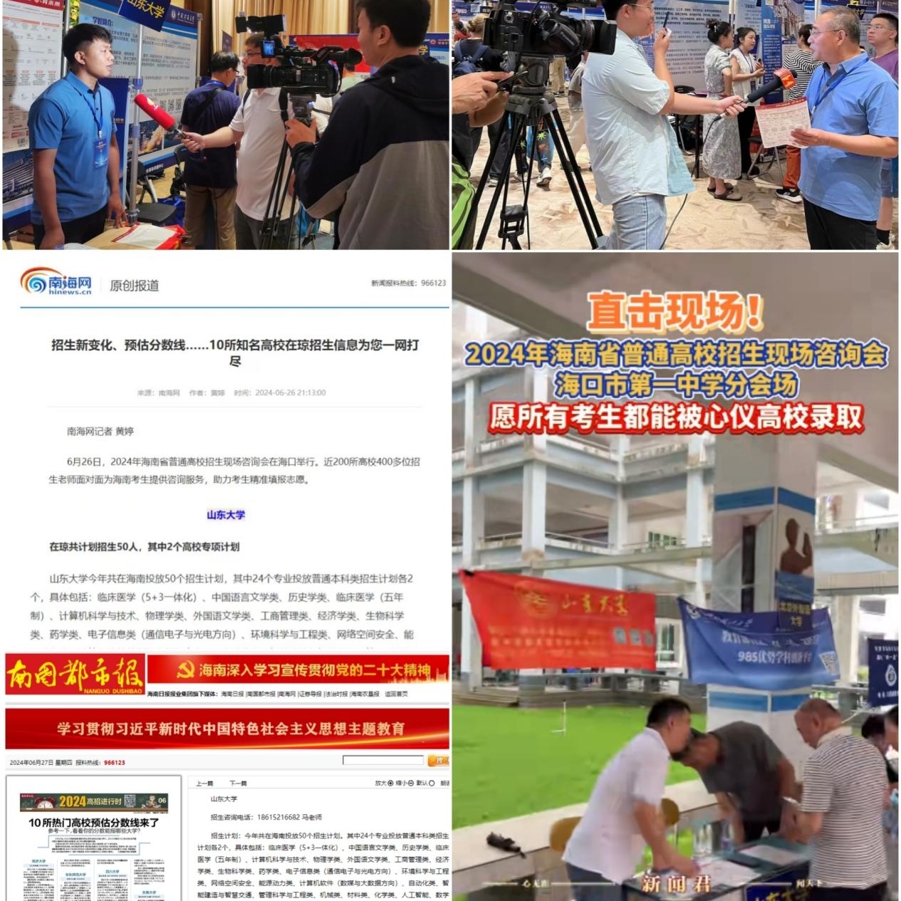 在学院党委书记、本科招生拓展组组长郭学庆的指导下,学院委派院领导、教务秘书、骨干教师等8人组建海南省本科招生拓展队伍,联合海南省当地15名优秀校友,用时6天,奔赴海南省5地市13所重点中学、观澜湖高招会现场,完成14场招生宣讲工作。同时,拓展组积极联系海南广播电视总台全媒体传播中心、南海网、南国都市报等媒体,通过接受采访、发布新闻稿件等方式,开展宣传活动。此外,拓展组通过开展招生政策宣讲会、师生座谈会、校领导交流会等形式与师生家长进行深入交流,建立4个微信答疑群,为千余名师生提供咨询服务,不断扩大新葡萄AMG官方网站在海南省的影响力。
