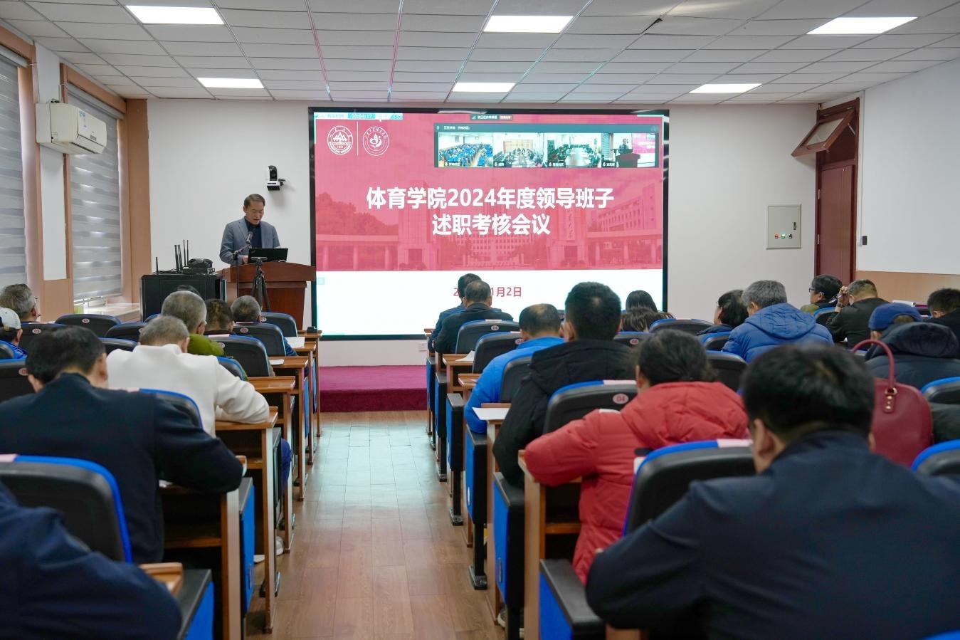 会上,院长孙晋海代表新葡萄AMG官方网站领导班子作年度工作总结汇报。他指出,2024年新葡萄AMG官方网站领导班子坚持以习近平新时代中国特色社会主义思想为引领,深入学习和贯彻党的二十届三中全会精神及全国教育大会等重要会议精神,致力于提升立德树人成效,在服务国家大局和深化体教融合中勇担使命,推动学院事业取得进步。孙晋海根据学校第十五次党代会精神,部署了学院高质量发展方案,他围绕落实“一二三六”工作思路,提出了未来工作的五项重点举措,将集中力量推进发展战略、创新实施师生体质强健计划、加速竞技运动水平提升、推进学科交叉融合与创新发展,以及利用人工智能赋能体育育人等重点任务。