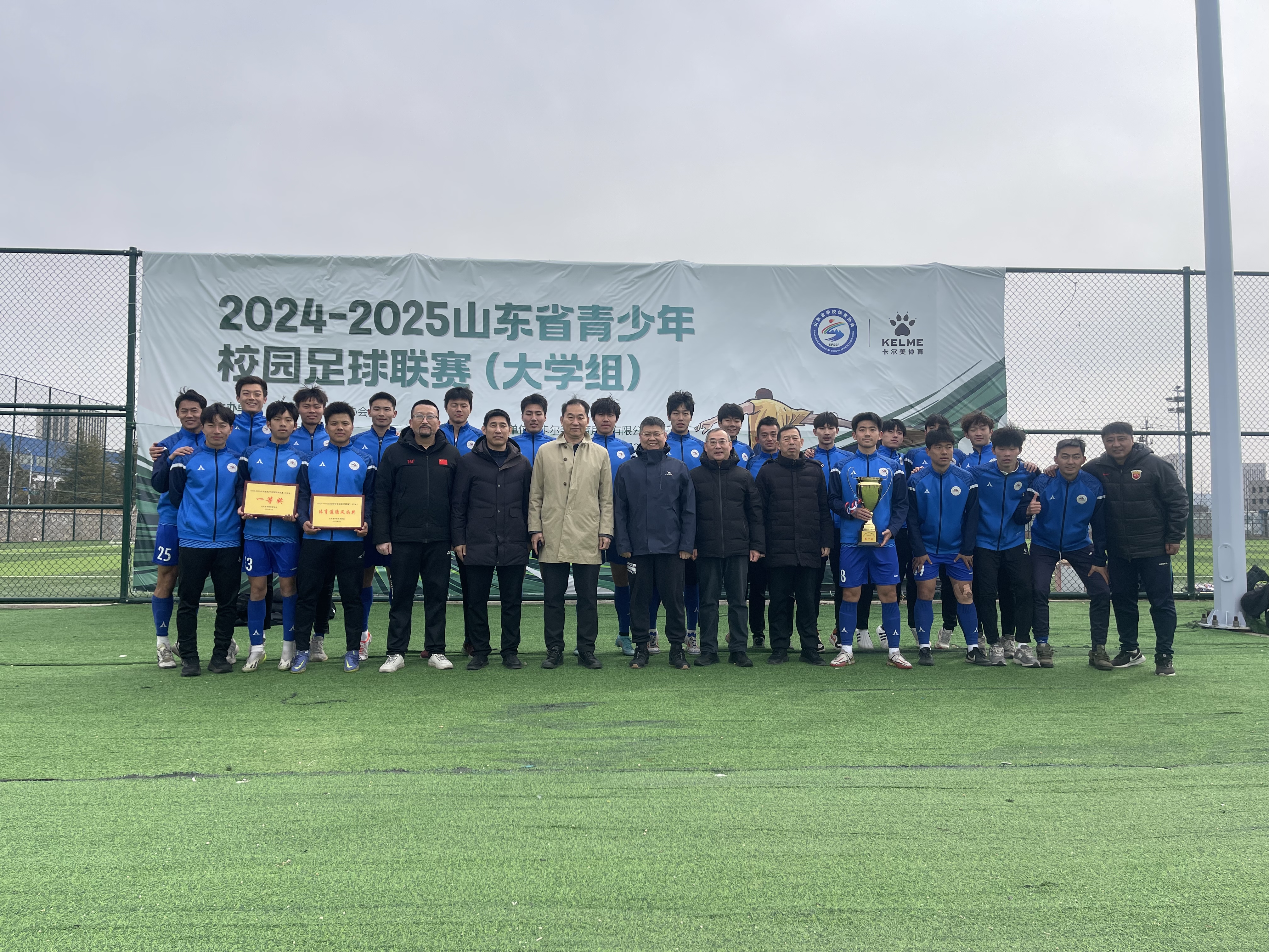 3月17日,在2025山东省校园足球联赛(大学组)男子组决赛中,新葡萄AMG官方网站足球队3比0战胜山东新葡萄AMG官方网站足球队,夺得冠军。本次山东省青少年校园足球联赛(大学组)吸引了全省高校踊跃参与,新葡萄足球队在张立国老师的带领下,迎战曲阜师范大学、齐鲁工业大学、山东新葡萄AMG官方网站三支强队,分别以3:0、5:0、3:0的比分完胜对手,实现零封,最终以总分第一的优异成绩晋级,获得全国大学生足球联赛的参赛资格。每一粒进球都凝聚了队员们的辛勤汗水和默契配合,每一次防守都展现出坚如磐石的意志,他们用实力生动诠释了“团结、拼搏、永不言弃”的体育精神。