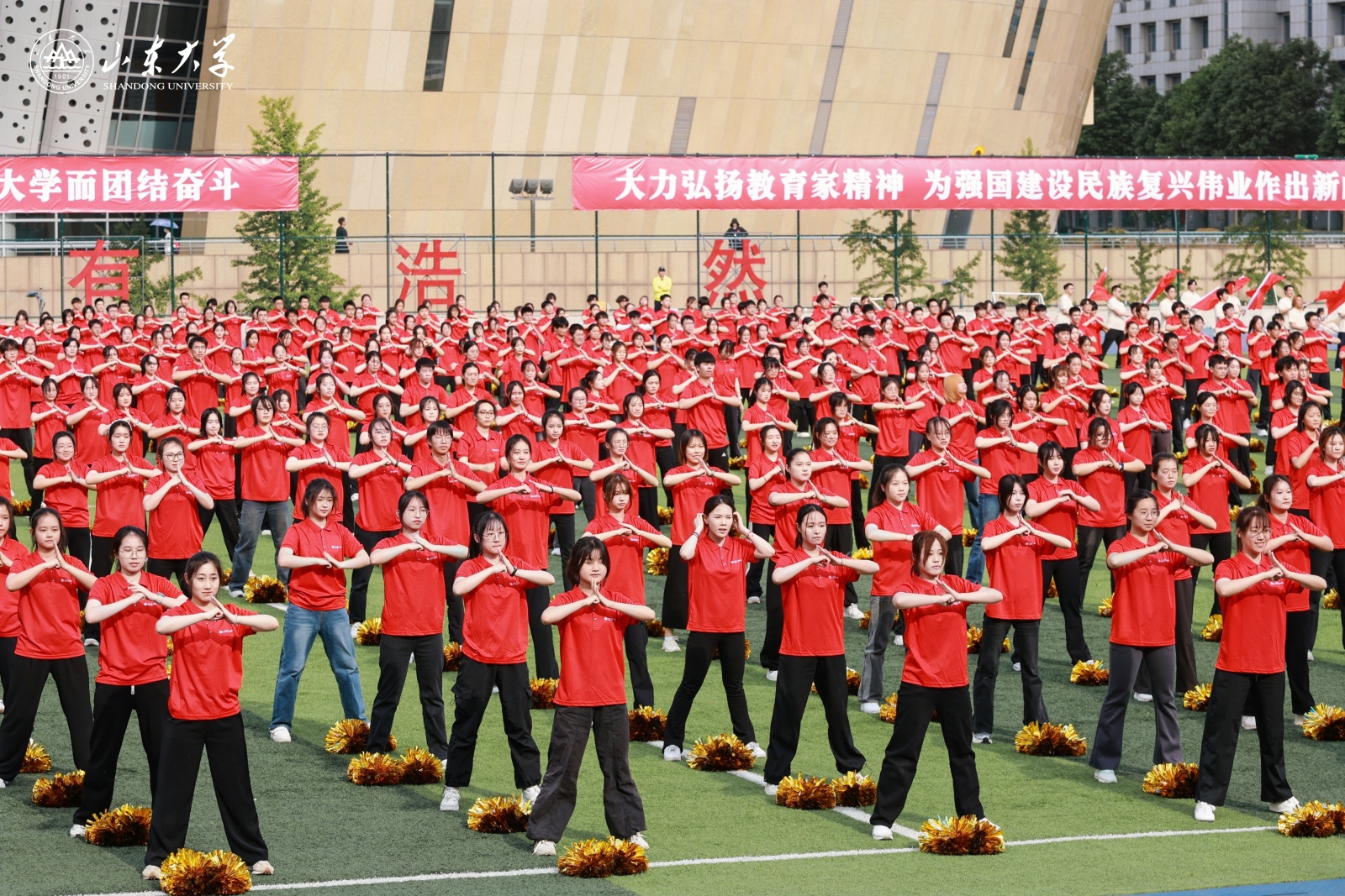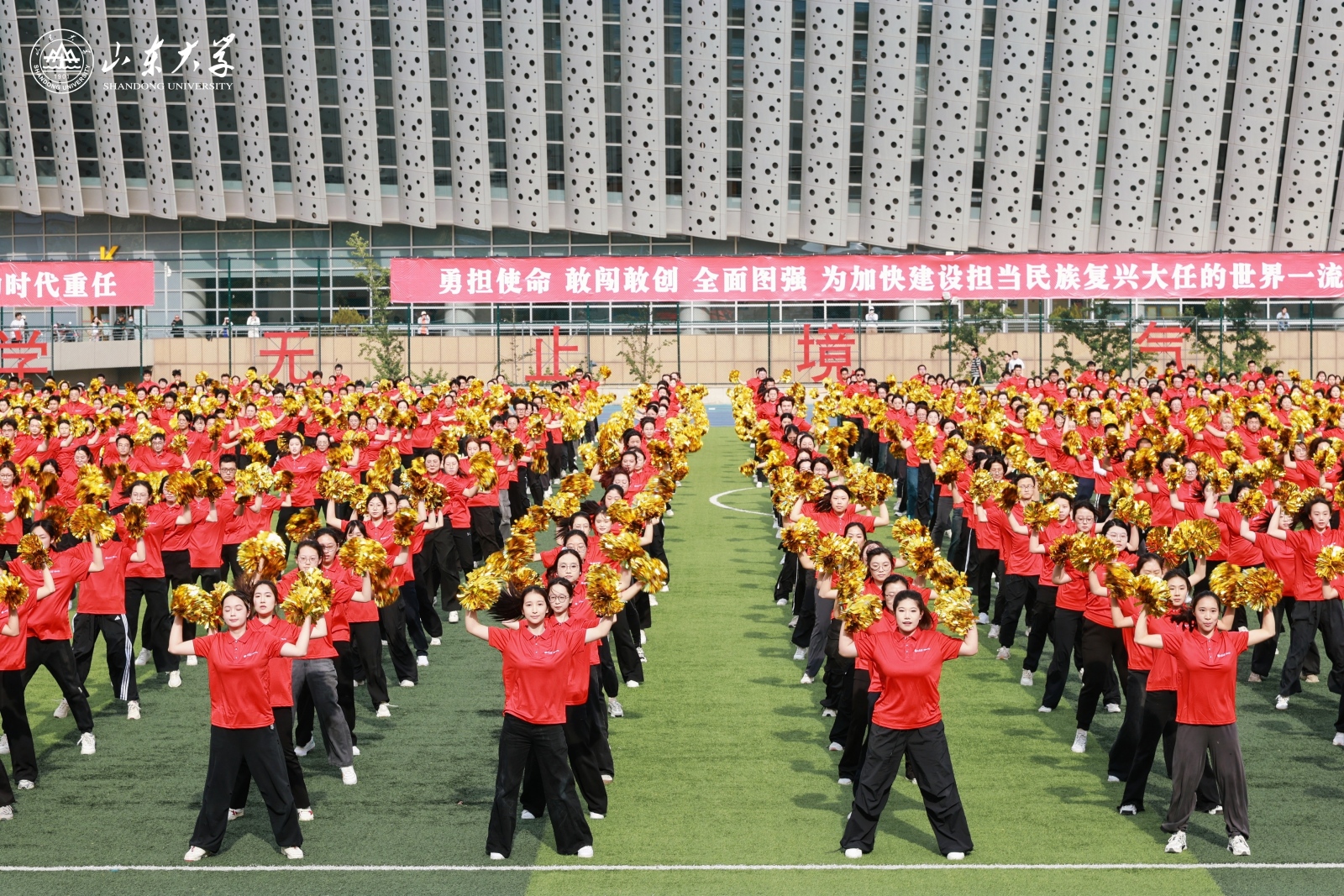 当《山河图》的恢弘乐章响彻云霄,由九百余名健美操专项课的学子组成的庞大方阵手持金色花球踏浪而来!他们来自五个校区,历经近一年的挥汗打磨,此刻以舒展奔放的舞姿勾勒长江黄河的奔涌脉络,用跃动的身影晕染万里长城的巍峨脊梁。翻涌的花球如山河脉搏般跃动,红色的花球更似朝霞点染大地,每一次翻飞都是对祖国九百六十万平方公里热土的深情礼赞;当《霍元甲》的激昂鼓点与《云宫迅音》的炫酷旋律交织碰撞,运动场瞬间点燃了传统与潮流的火花。在新葡萄AMG官方网站教师的数月编排和精心指导下,同学们将街舞的酷飒自由、花球啦啦操的活力四射与八段锦的刚柔并济完美交融。