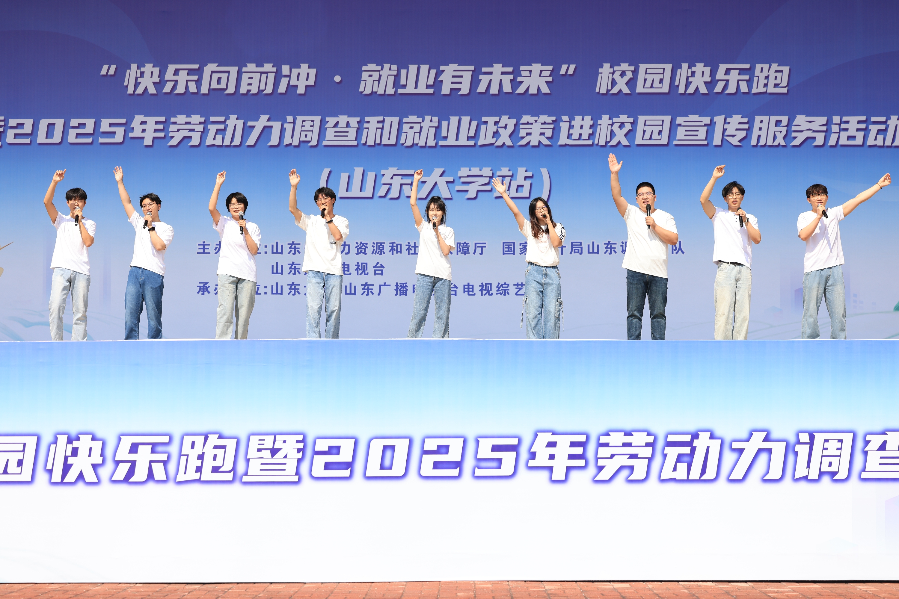本次活动由新葡萄AMG官方网站、山东省人力资源和社会保障厅、国家统计局山东调查总队、山东广播电视台联合主办,旨在鼓励大学生以奔跑的姿态追逐职业理想,以脚踏实地的行动书写人生华章,为他们的就业之路注入新动力。活动打破传统政策宣讲模式,创新地将山东广播电视台《快乐向前冲》IP融入校园场景,以大学生喜闻乐见的方式宣传相关政策,让学生们对就业政策有了更直观、更深刻的认识。