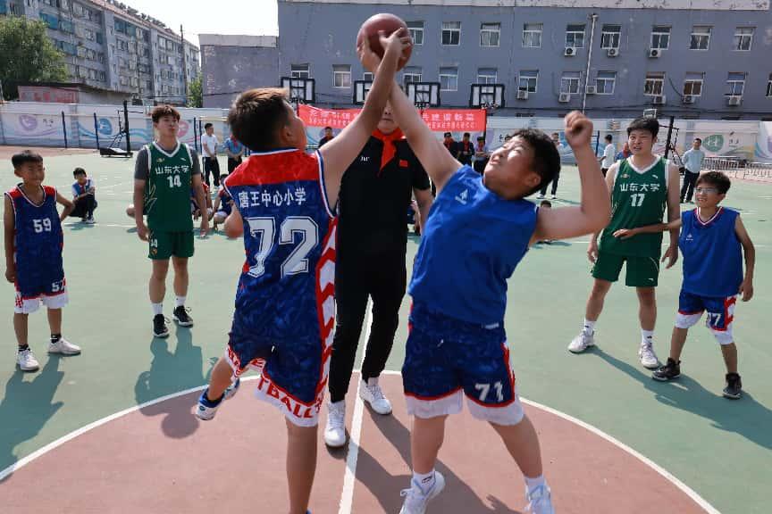 签约仪式之后,前山东男篮队长、现新葡萄AMG官方网站男篮主教练曹振华作为代表向唐王中心小学捐赠儿童篮球器材。新葡萄AMG官方网站男篮队员们与唐王中心小学的学生们展开了一场别开生面的篮球互动,男篮队员们通过现场技术示范和战术指导,为小球员们带来了一场沉浸式的篮球教学。学们热情高涨,篮球的魅力点燃了孩子们的运动激情。