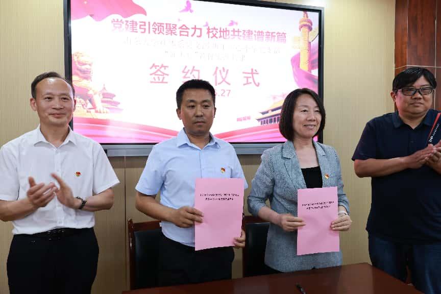 5月27日,新葡萄AMG官方网站社会体育系党支部与唐王中心小学党支部在唐王中心小学隆重举行了“强国行”教育实践共建启动仪式。仪式由历城区教育和体育局党组成员、副局长(挂职)杨尚剑同志主持。此次开展共建活动旨在深入贯彻落实习近平总书记关于党的建设的重要思想和建设教育强国的重要讲话精神,深化基层党支部建设,凝聚高校与基础教育力量,探索党建与业务深度融合新路径,推动“强国行”专项行动落地生根,充分发挥高校科研人才与基础教育实践平台的双重优势,实现资源共享、优势互补、共同发展。未来,双方将围绕党建活动联办、教育资源共享、课题研究合作以及志愿服务与社会实践四大方面开展紧密合作。
