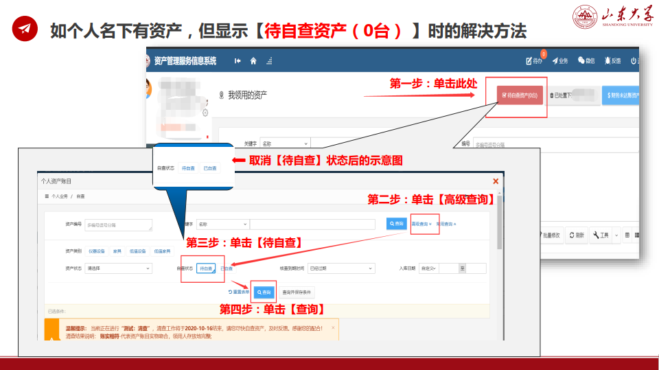 如个人名下有资产,但显示【待自查资产( 0台) 】 时的解决方法