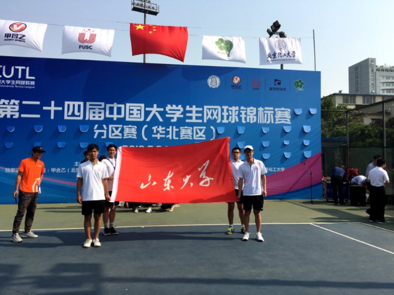 对网球运动的热爱让电气工程学院的贾士铎、公共卫生学院的张越洋、泰山学堂的刘子毅和机械工程学院的孙凯宾四位同学走到了一起,共同组建了新葡萄AMG官方网站学生运动队历史上的第一支网球队,在马颖竹老师的带领下出征北京,新葡萄人的身影首次在中国大学生网球锦标赛的赛场上亮相。