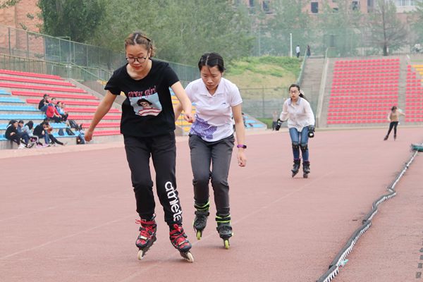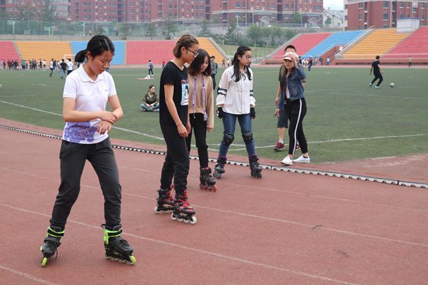 比赛首先进行的是女子800米轮滑竞速。发令声落,能动学院的张旭一马当先,冲到了最前方,管理学院官海珠和经济学院李小曼紧随其后。一圈过后,张旭由于体力不支被官海珠反超,此时距离终点只剩不到200米,两人的差距逐渐拉开,最后官海珠获得第一名,张旭、李小曼分获二、三名。